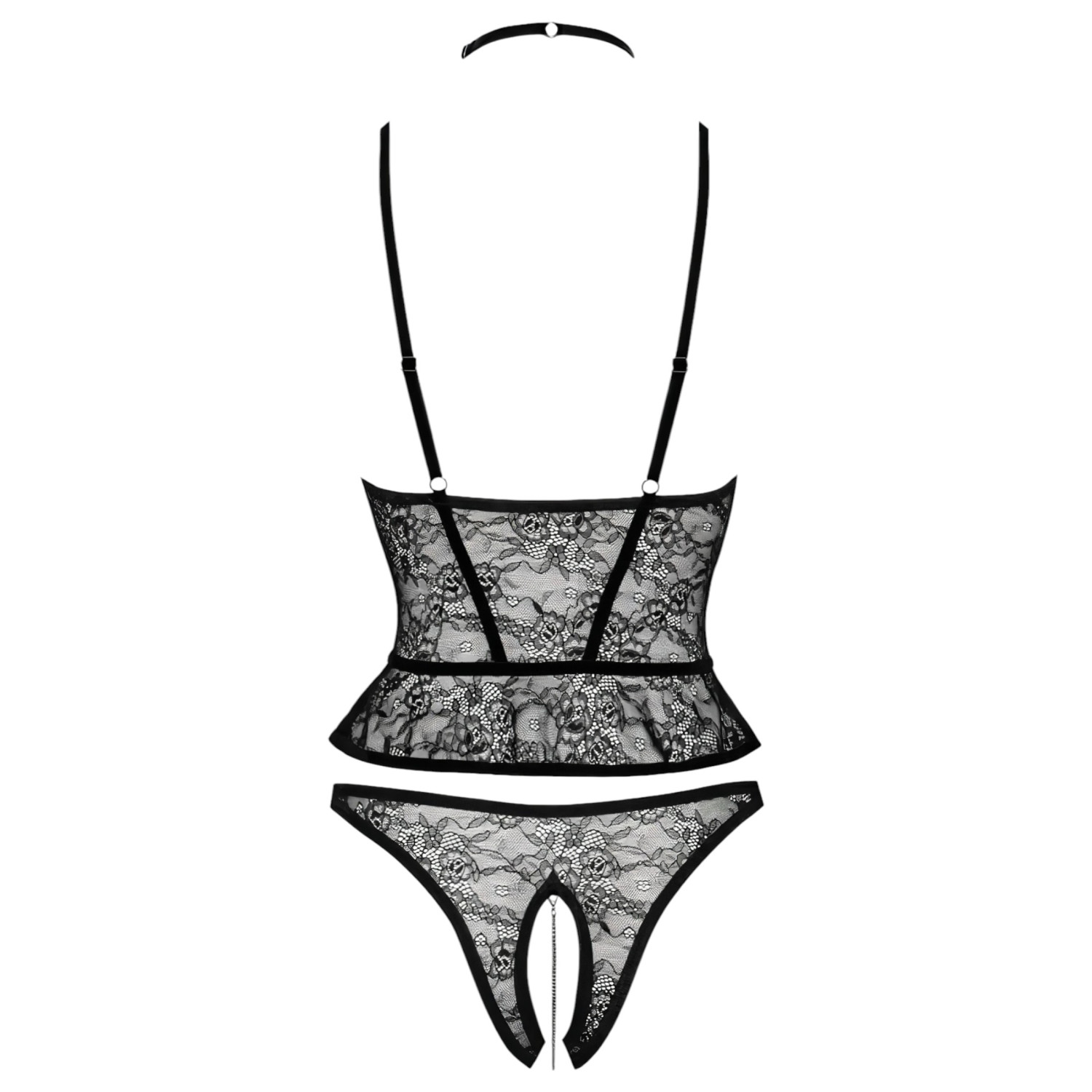 Forførende åpencup korsett laget av villende blonder, med tilhørende truse - Abierta Fina åpen truse og korsett, der du garantert kan vise frem din mest forførende side!