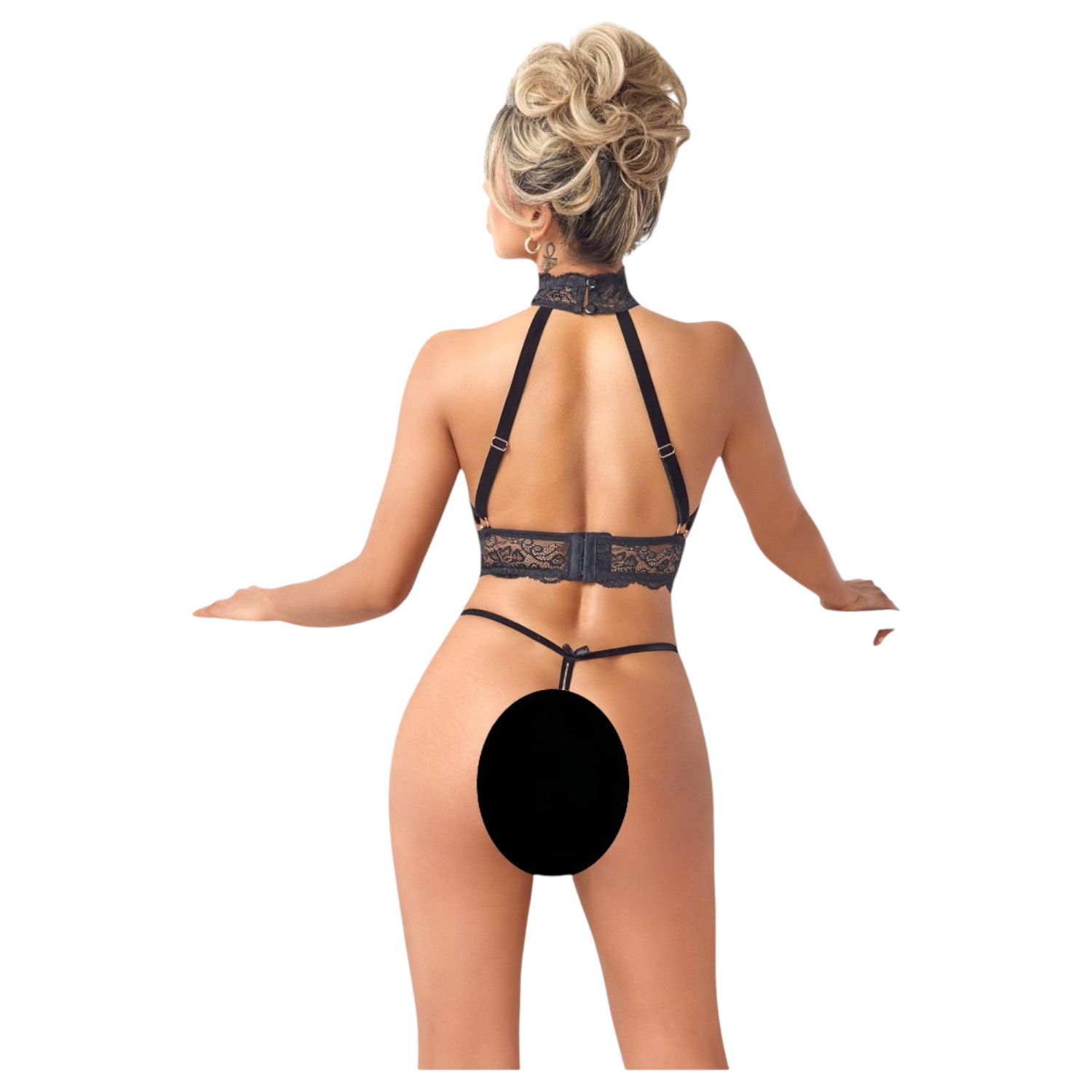 Abierta Fina - kjedet åpent undertøyssett (svart) - XL
