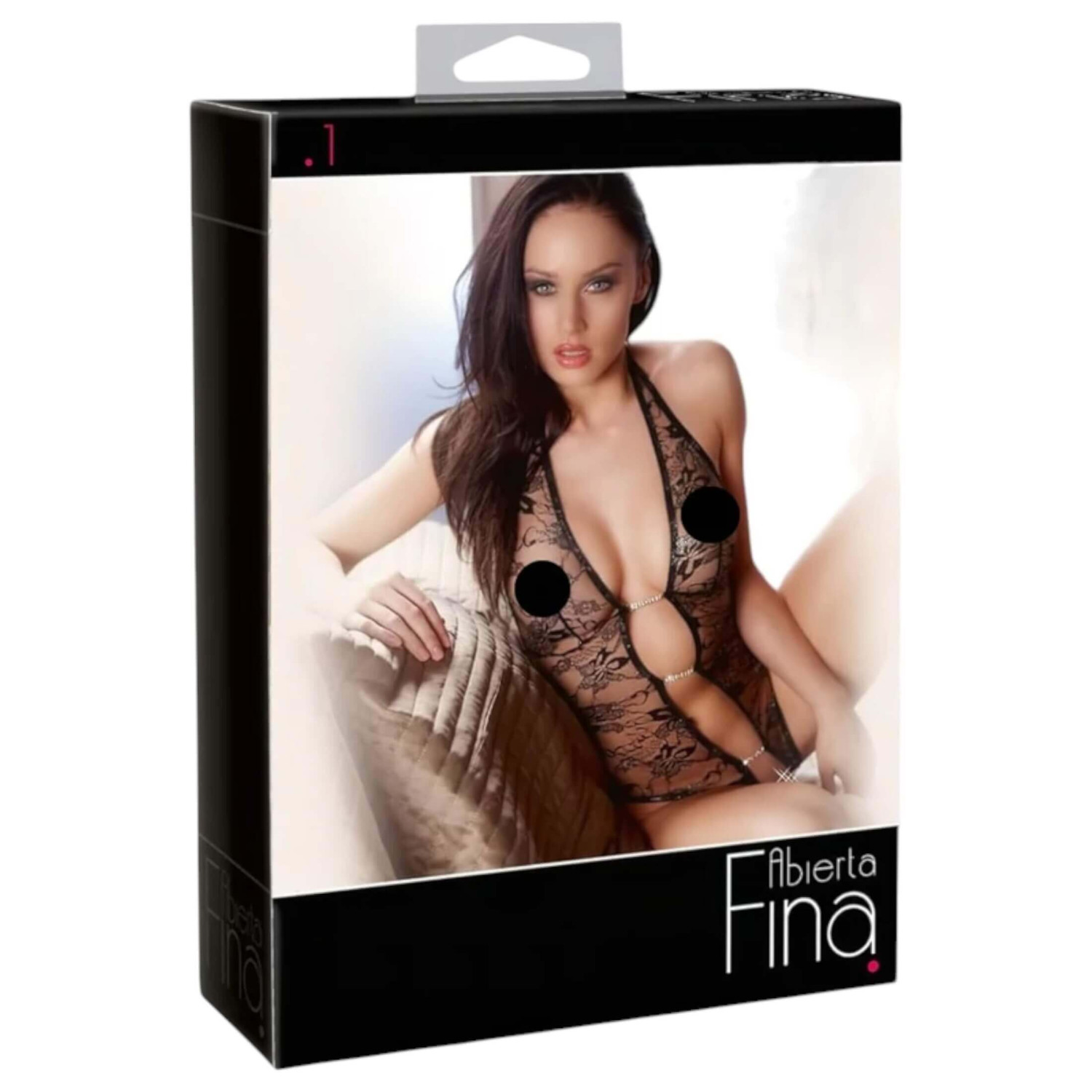 Den Utfordrende glitrende blondebody er det perfekte valget for kvinner som elsker en dristig og stilfull stil. Dette spesielle undertøyet er som et eksklusivt smykke: svart blomstrete blonde med sølvskimrende tråder og rhinestensdekorasjoner gjør det enda mer sexy. Halssnor-designet fremhever elegant skuldre og dekolletasje, mens den bakre gjennomskinnelige, elastiske materialet dekker kroppens former forsiktig. Foran er det bare noen få skinnende smykker som holder materialet sammen - sluttresultatet er imponerende og utrolig sexy.