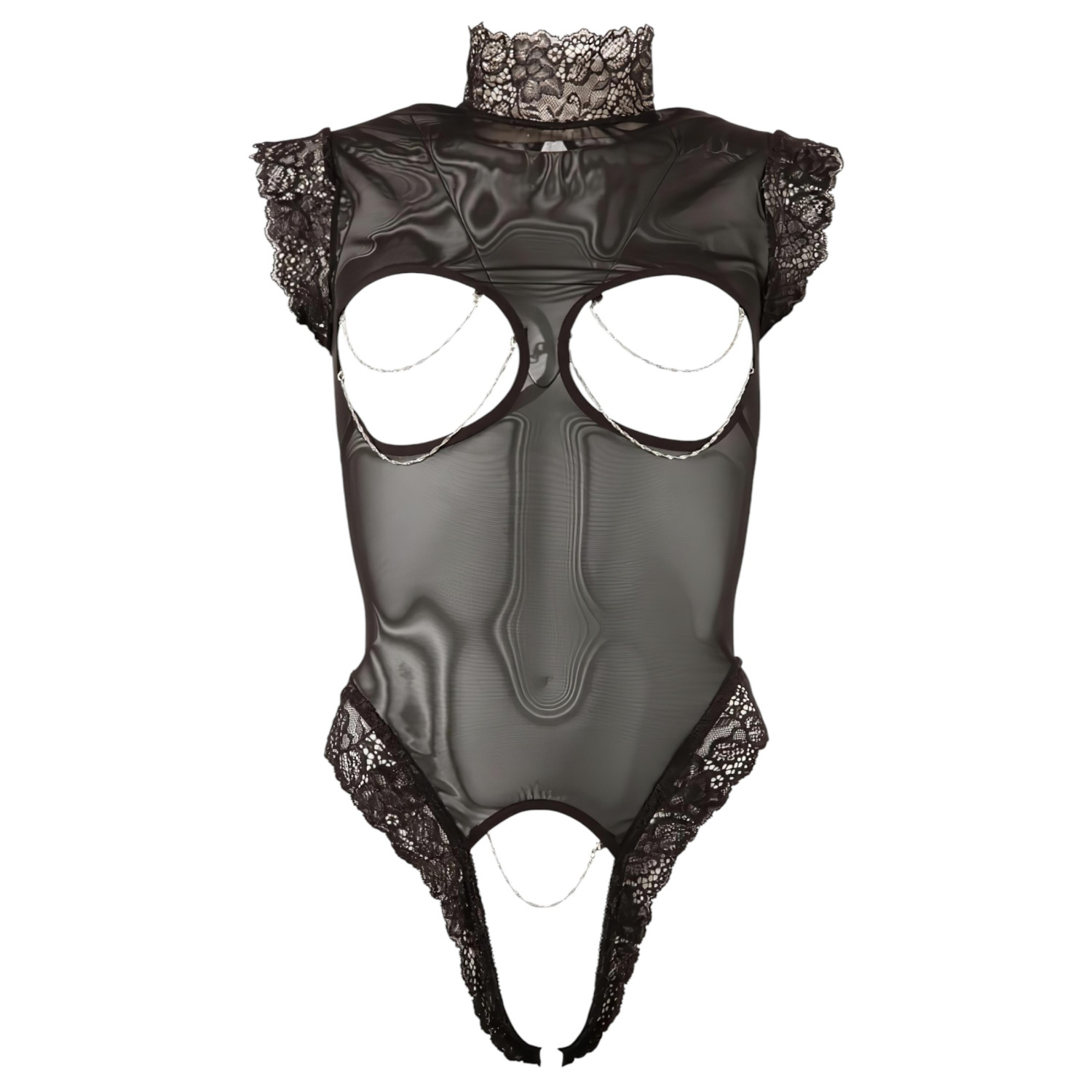 Denne spesielle åpne bodyen er både elegant og vilt erotisk. Blonde detaljer gir en feminin eleganse, mens det gjennomsiktige materialet og de avtakbare kjettingdekorasjonene sørger for en uforglemmelig opplevelse.
