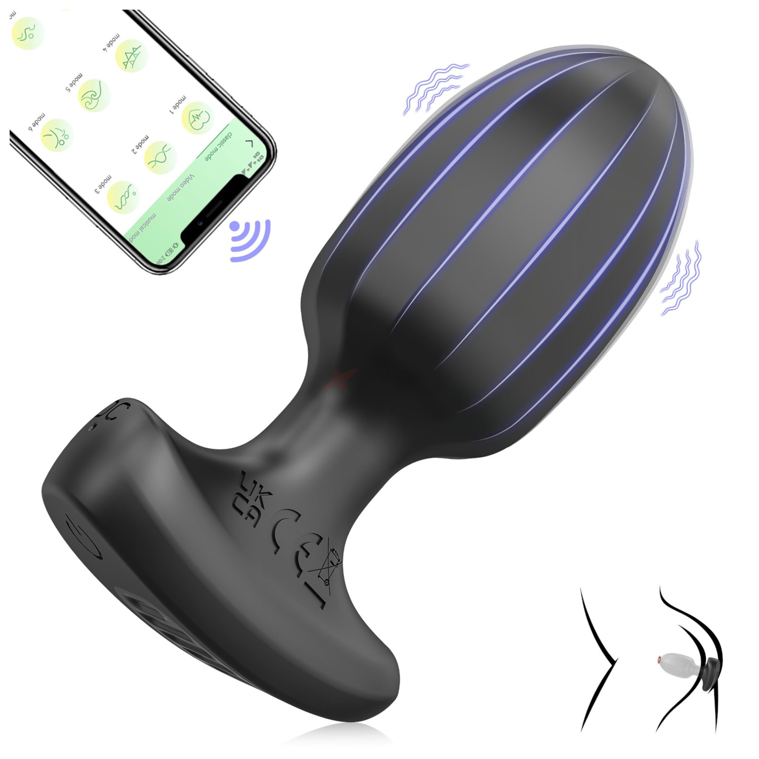 AlvUp - smart analvibrator (svart) kan styres fra smarttelefon, et ergonomisk designet analleketøy som skjemmer deg bort med intense vibrasjoner og tilpassbare opplevelser.