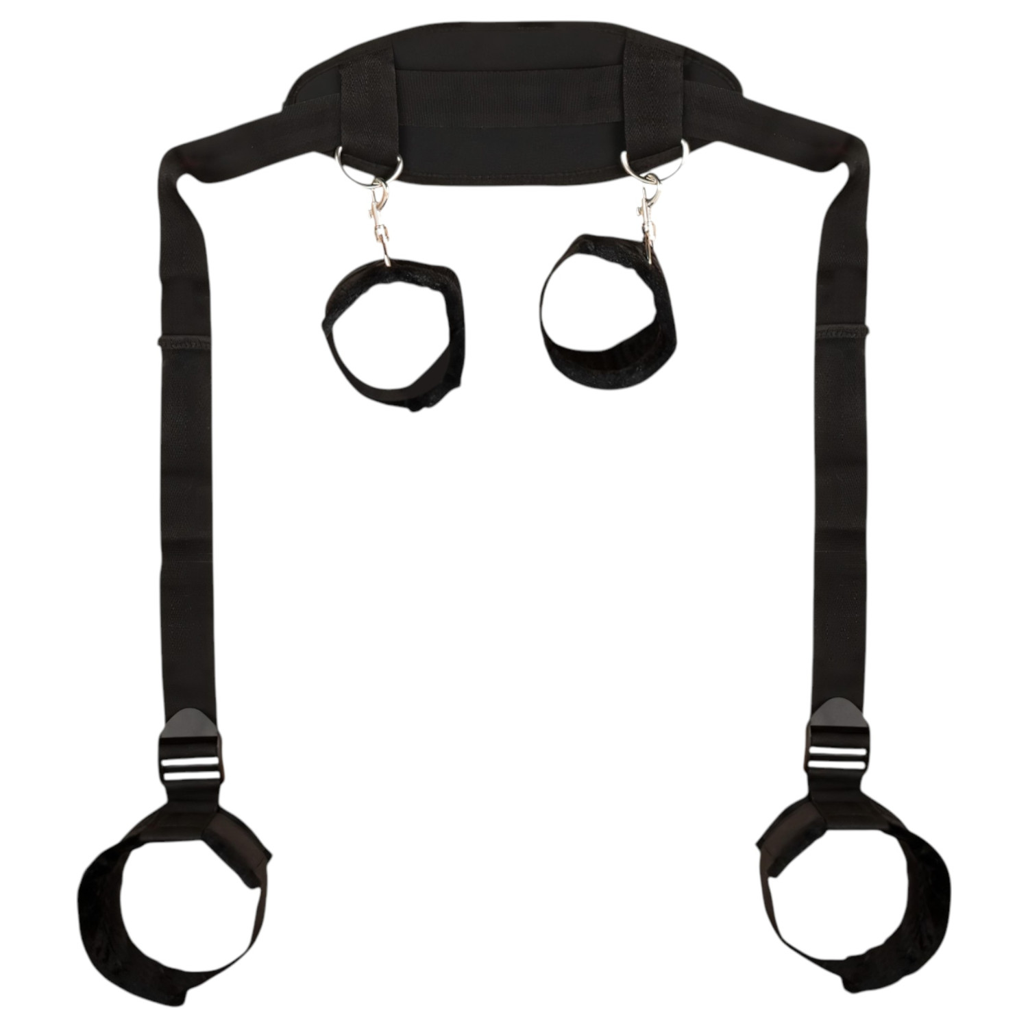 • Håndfester - (med metallkarabiner) avtakbare borrelåsbelagte håndjern for å feste partnerens hender