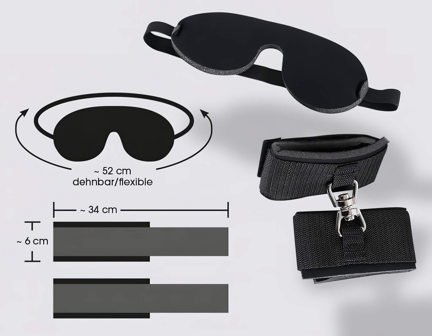 • 1 polstret, ugjennomsiktig maske med elastisk bånd.