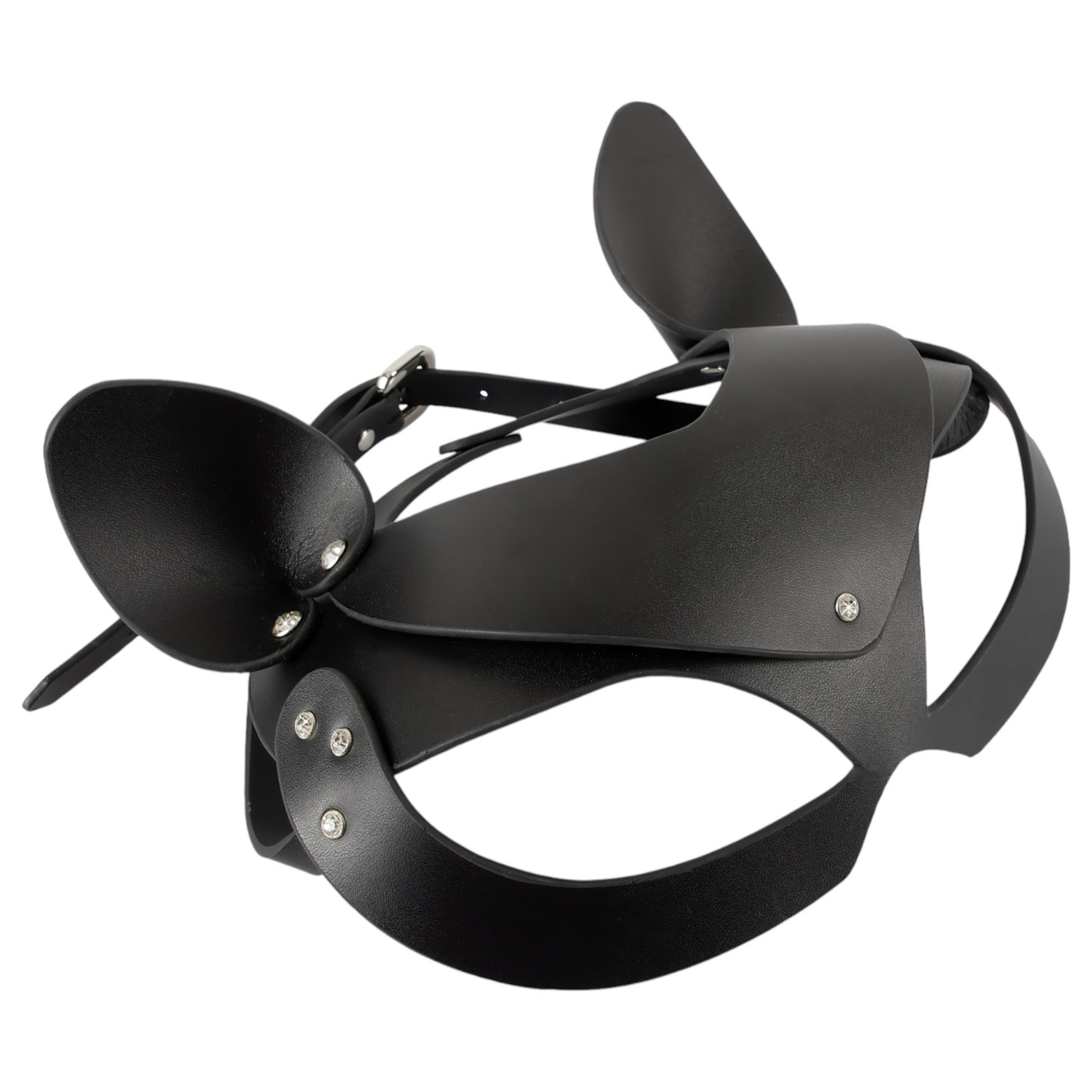 • 1 stk. katteøremaske i imitert skinn med strassnitter