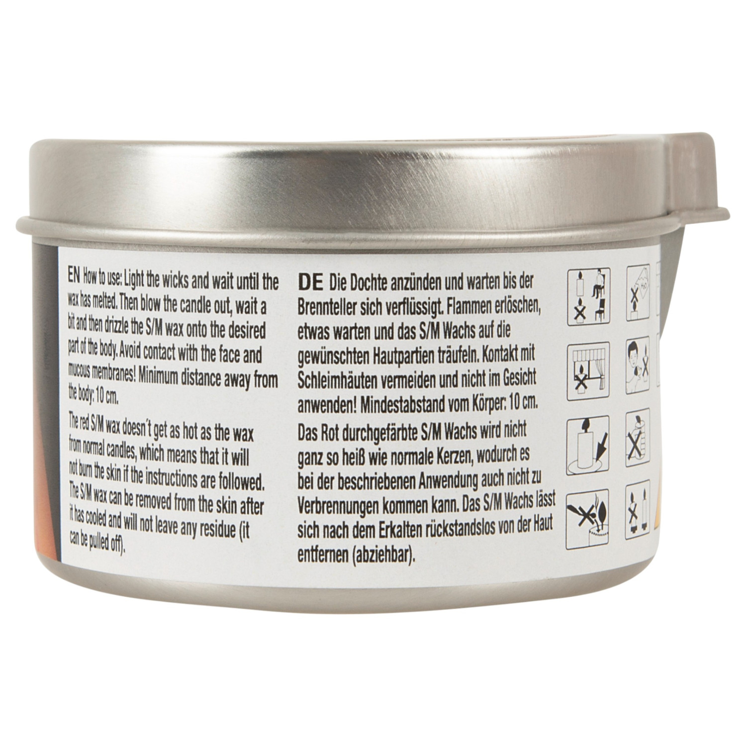 • 1 stk rød vokslys med lavt smeltepunkt i metallbeholder