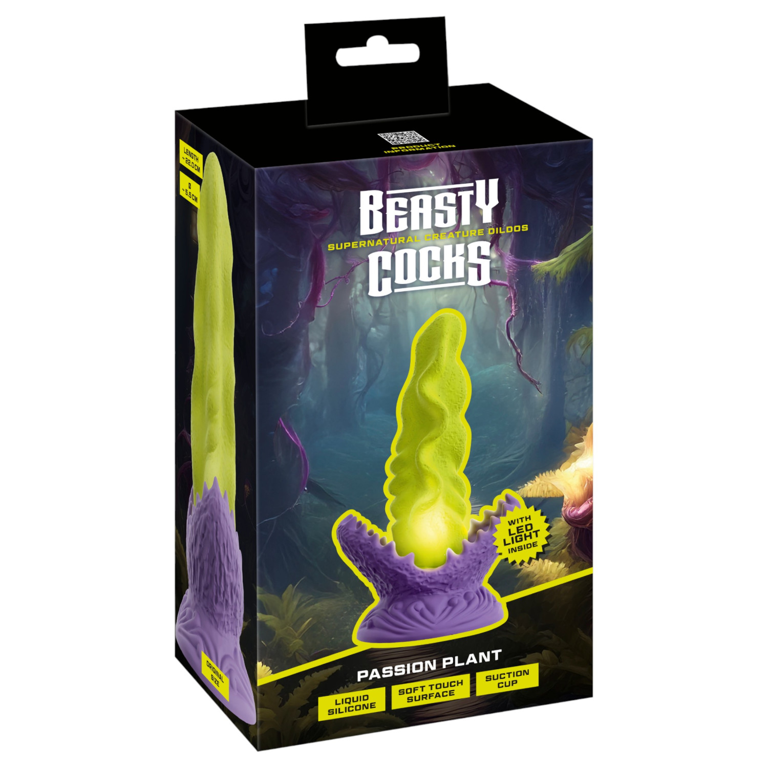 Beasty Cocks Passionate Plant er en spesiell, fantasifull utseende sugekoppdildo med LED-lys, som både visuelt og opplevelsesmessig overgår de vanlige grensene.