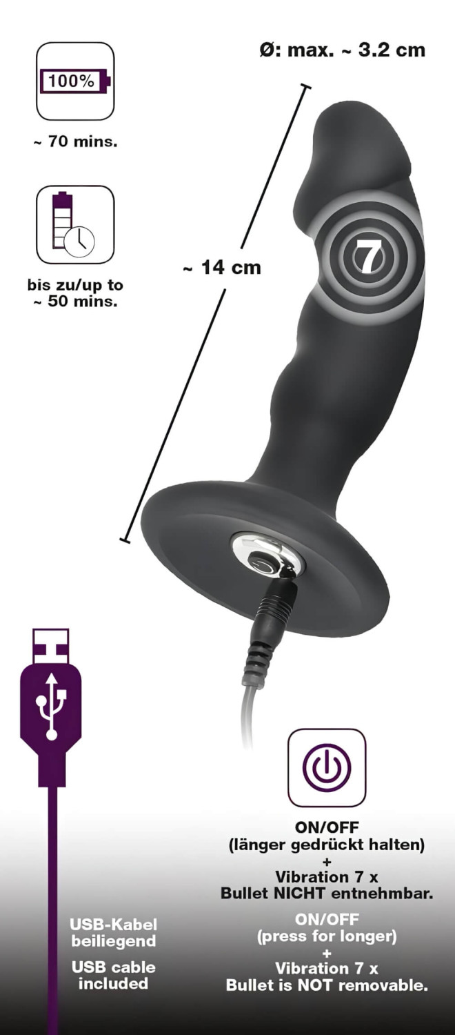 Universell analvibrator med sugekopp er et allsidig leketøy som er ideelt for både kvinner og menn. Med sin bøyde, penisformede design passer den perfekt til kroppens anatomi, og fungerer også utmerket som en prostatamassør.