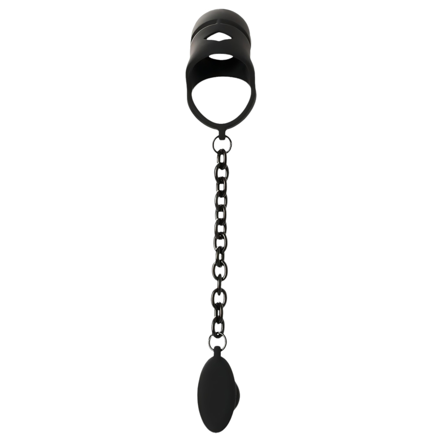 • Penisburet er festet med kjede til dildoen