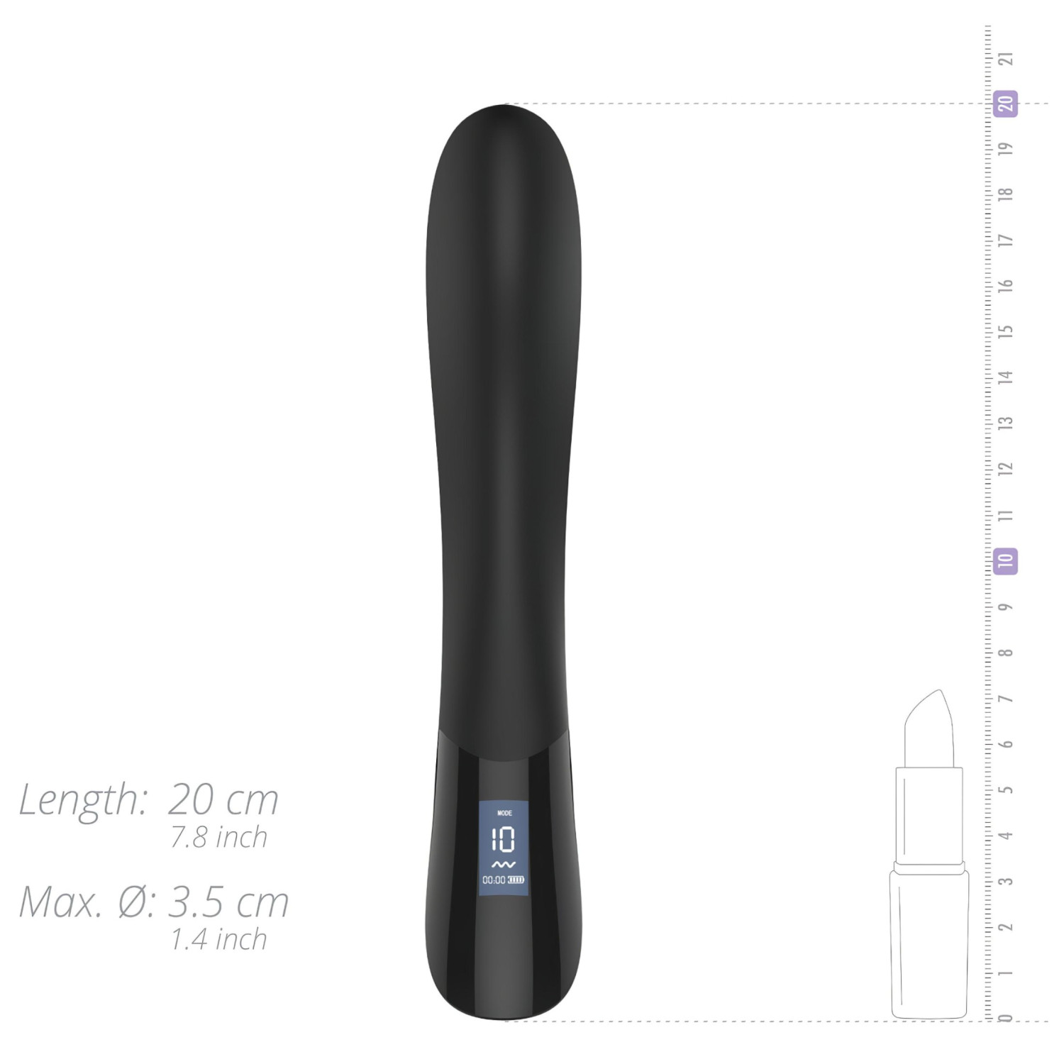 • Digitalt display – se hvilken funksjon du bruker, batterinivået, og hvor lenge vibratoren har vært i bruk