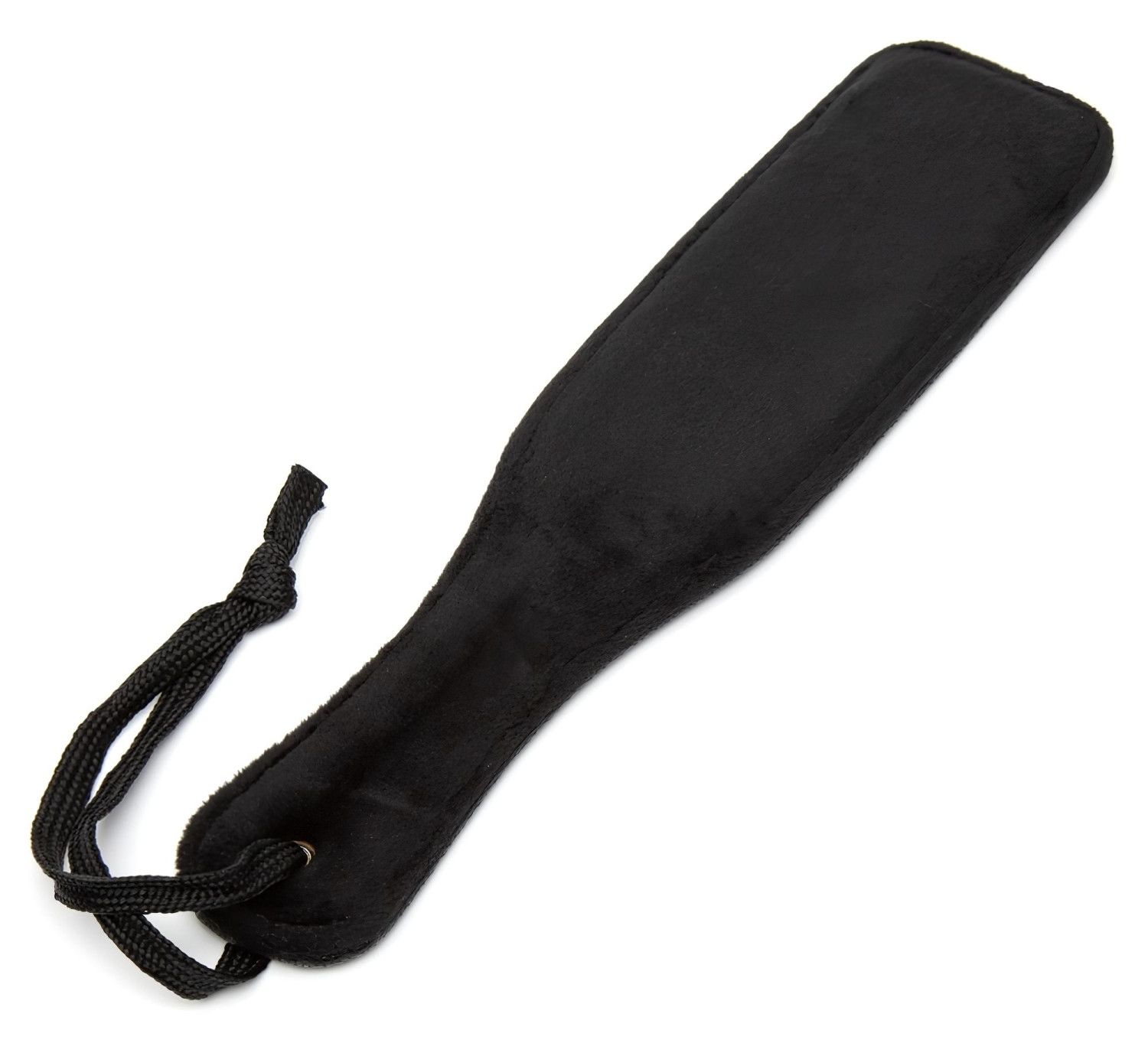 Denne høykvalitets piske er både myk og kraftig. Den ene siden er dekket med silkemyk plysj, mens den andre siden har glatt lær med vakre, sydde kanter.