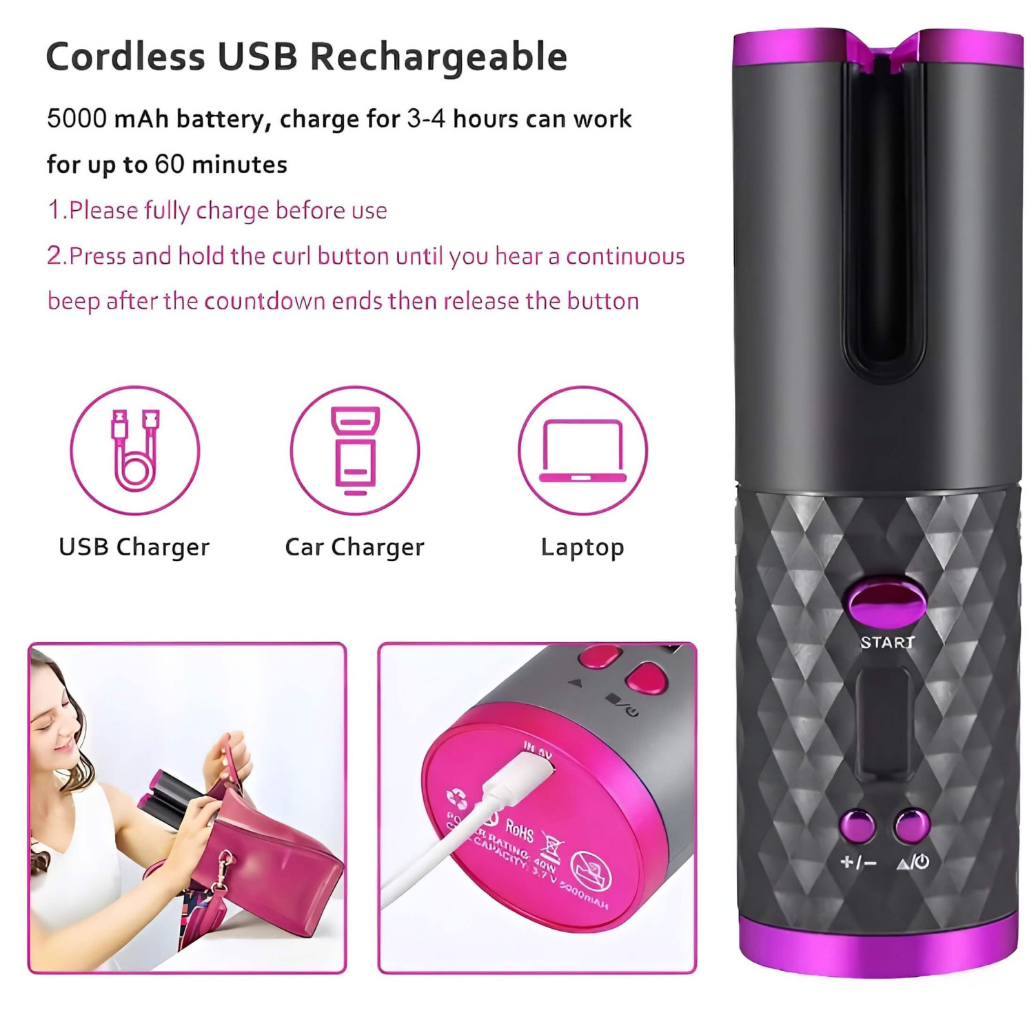 Praktisk oppladbar hårkrøller som enkelt gjør ditt rette hår til bølgete eller krøllete.