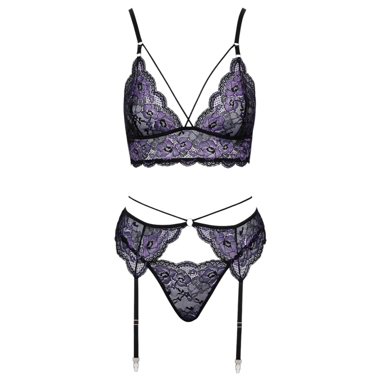 Cottelli - 3-delt blondesett (sort-lilla) - XL