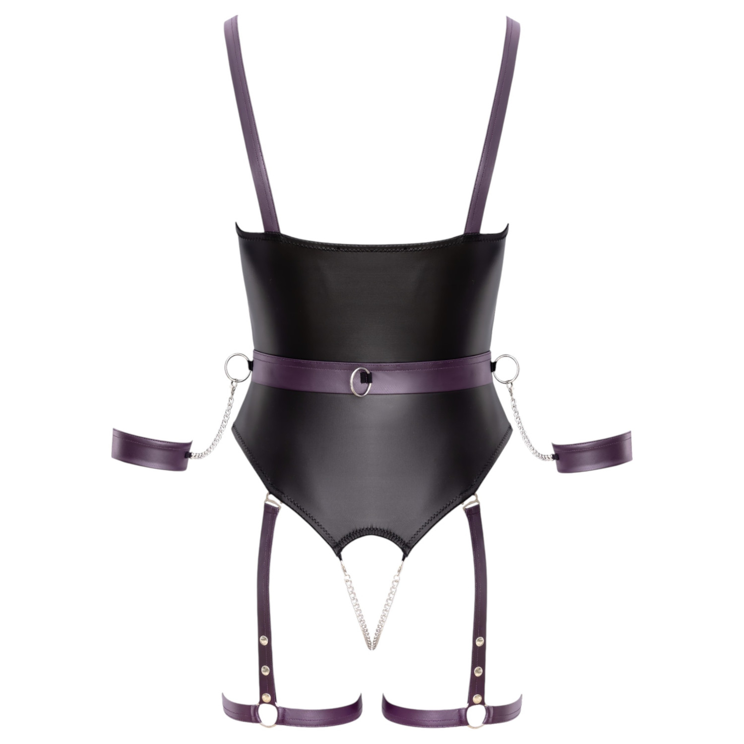 Denne raffinerte, men forførende fetish bodyen er et perfekt valg hvis du ønsker å gå ut av din komfortsone og utforske verdenen av bondage - med stil. Det komfortable, myke og elastiske materialet sitter perfekt på kroppen, mens dens pirrende detaljer (kjeder, ringer, håndjern) stimulerer alle dine sanser. Takket være sin åpne design trenger du ikke å kle av deg for nytelsen, noe som gjør den perfekt for en spennende dominerende eller underdanig lek.