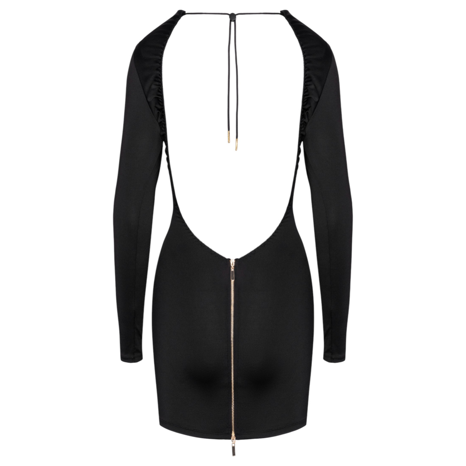 Cottelli Party sort svart, langermet minikjole er både elegant og provoserende – enkelt foran, men virkelig spektakulær bak.