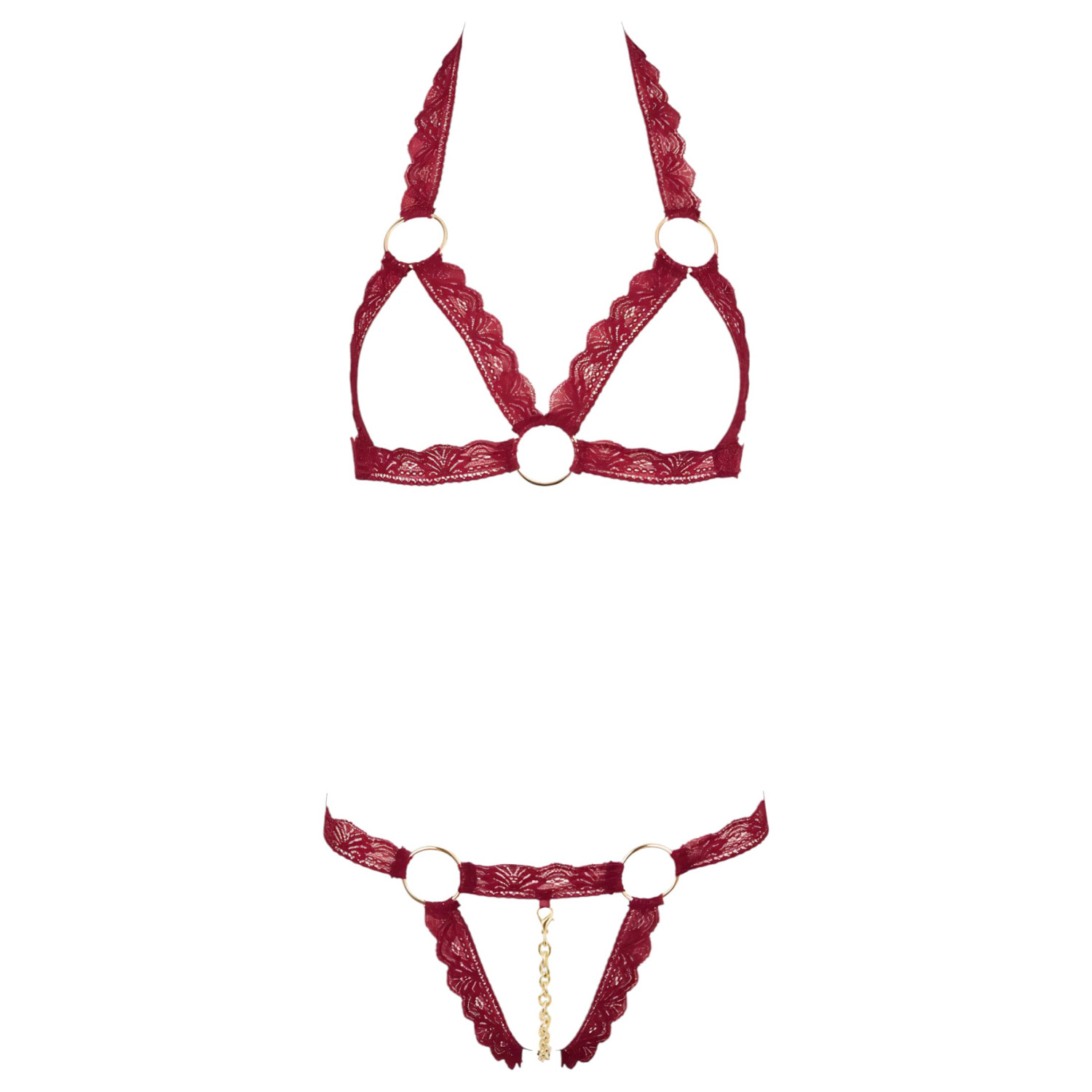 Anmeldelser Cottelli - Åpen BH-sett med metallringer (rød)