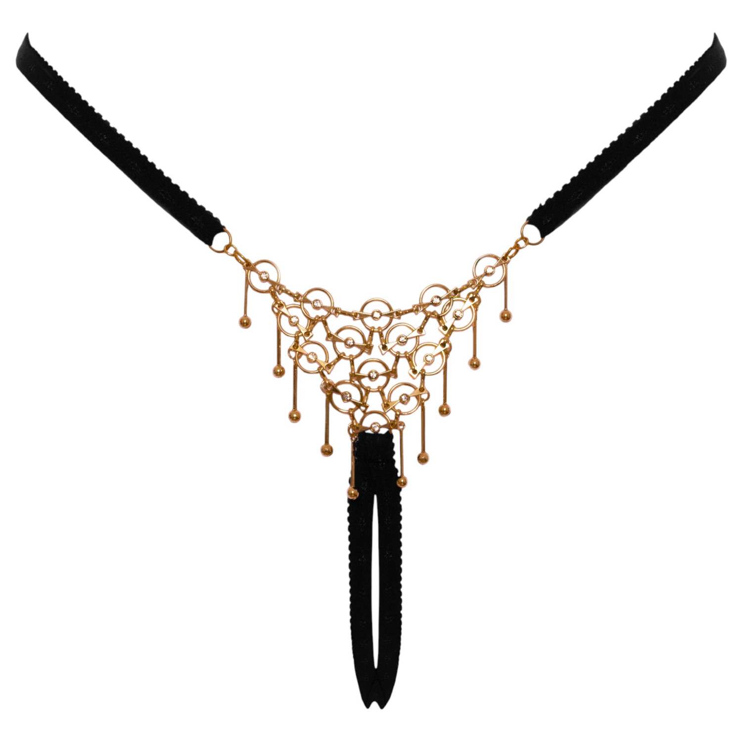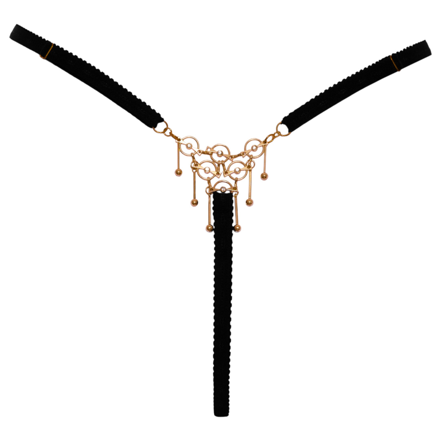 Denne spesielle stringtrusen er egentlig mer enn undertøy: et ekte, glitrende smykke som gir et erotisk og elegant utseende. De myke, elastiske stroppene sitter komfortabelt mot kroppen, mens den store rosa stenen og de glitrende kjedene foran gir en spesiell luksuriøs følelse.