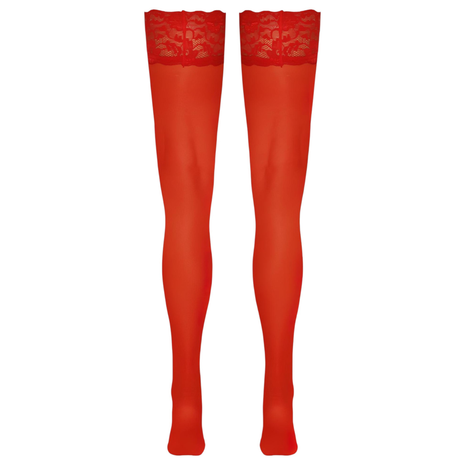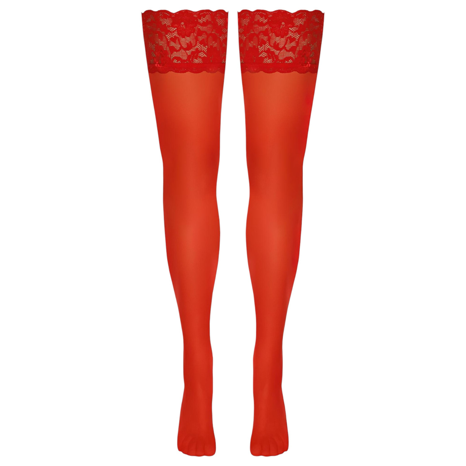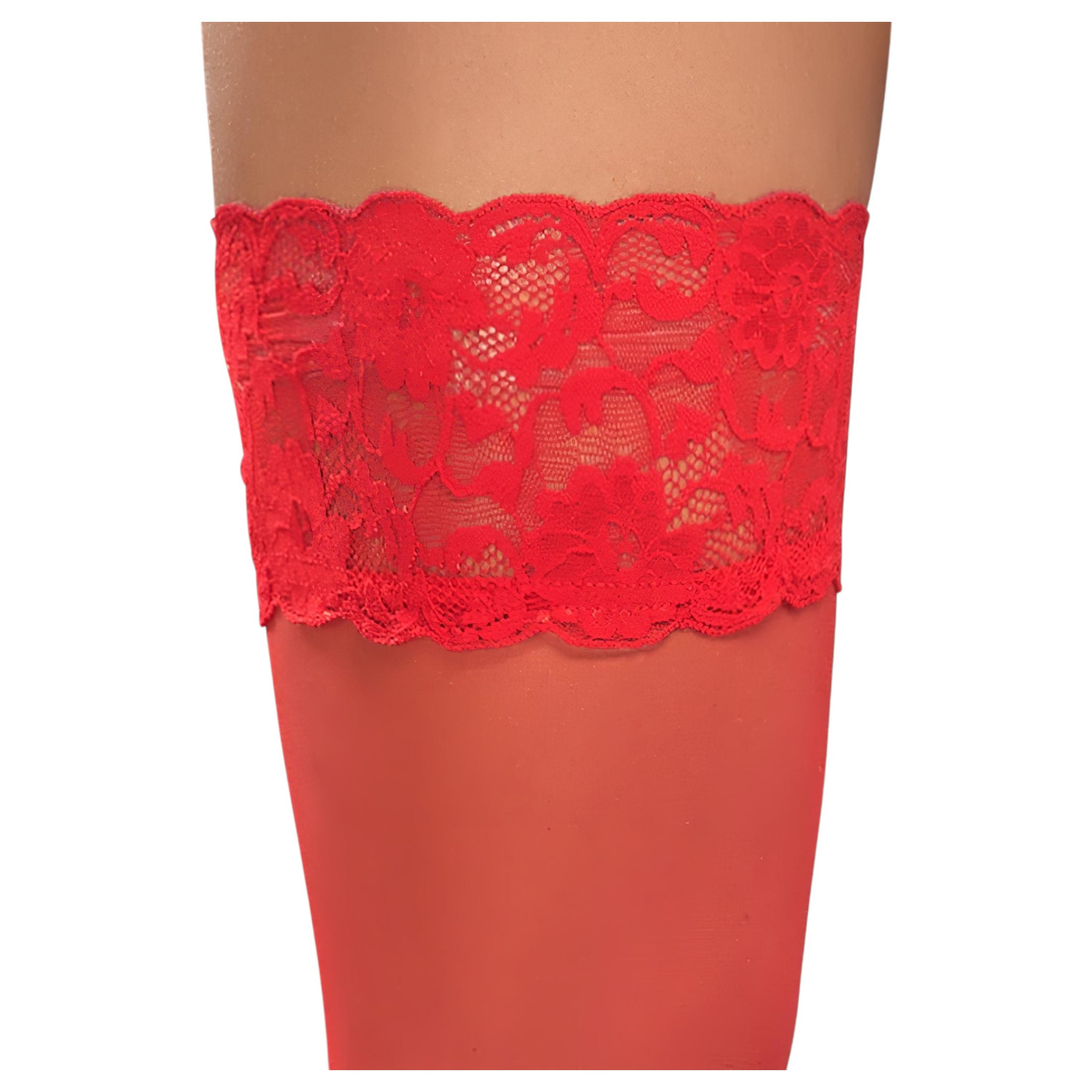 • 1 par røde stay-ups med 9 cm blondekant og silikonforsterkning