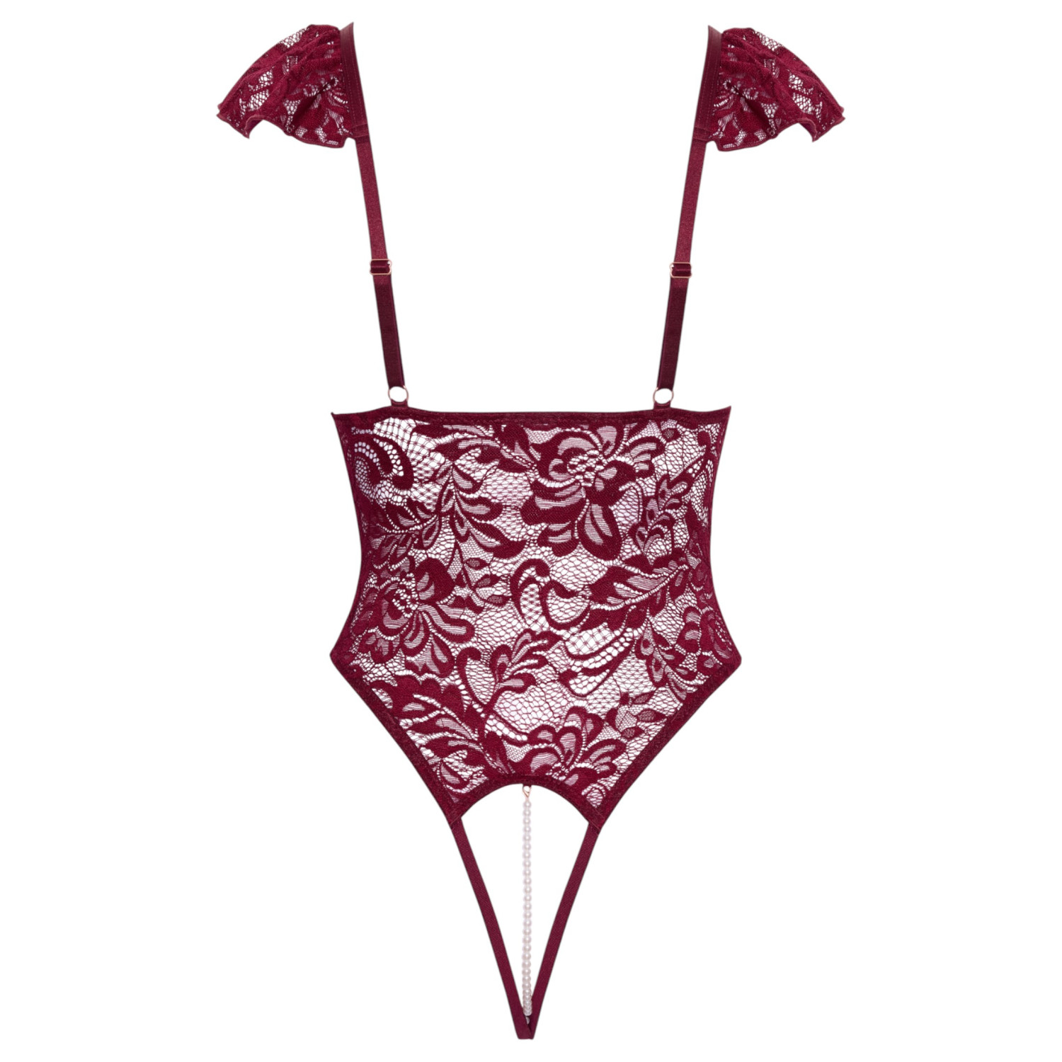 Denne bodyen gir ikke bare et forførende utseende, men gir også en spesiell opplevelse i intime øyeblikk. Det fine, myke blondestoffet, det sensuelle spillet med perlekjedene og den åpne designen bidrar alle til å skape et spesielt erotisk, men likevel komfortabelt antrekk. Dette er undertøyet som garantert vil heve stemningen.