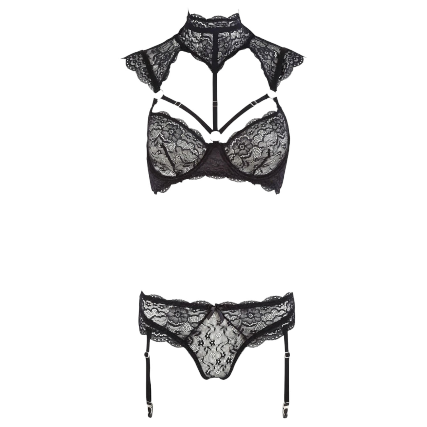 Cottelli - krage blonde BH-sett (svart) - 85B/L