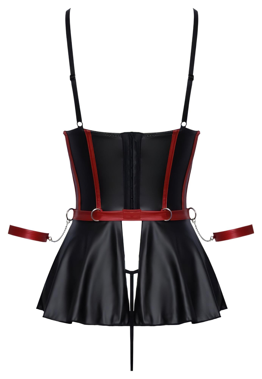 Ideell til sensuelle bindingleker med skjørt i en erotisk kombinasjon av matt svart og rød bysteholder!