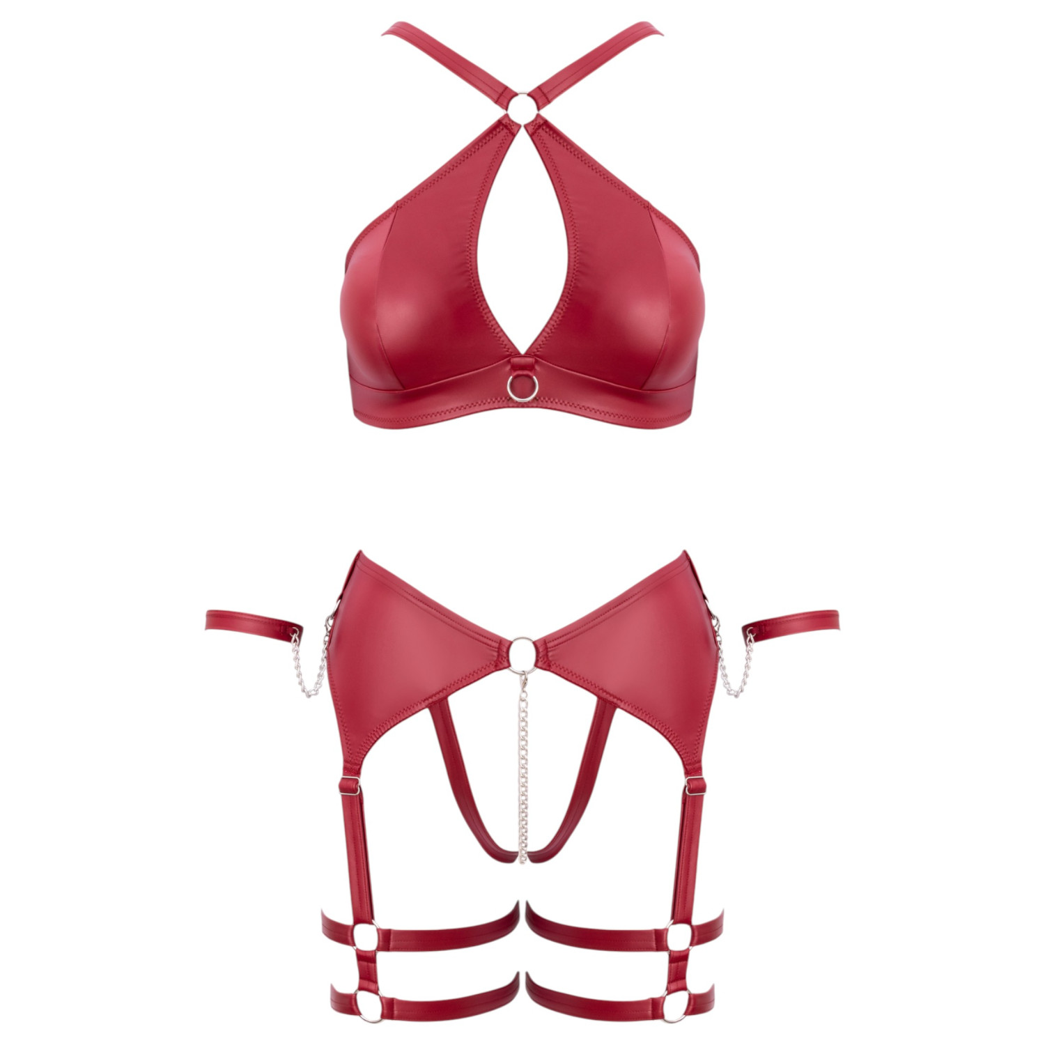 Cottelli Bondage - kryssbåndet BH-sett (rød) - M