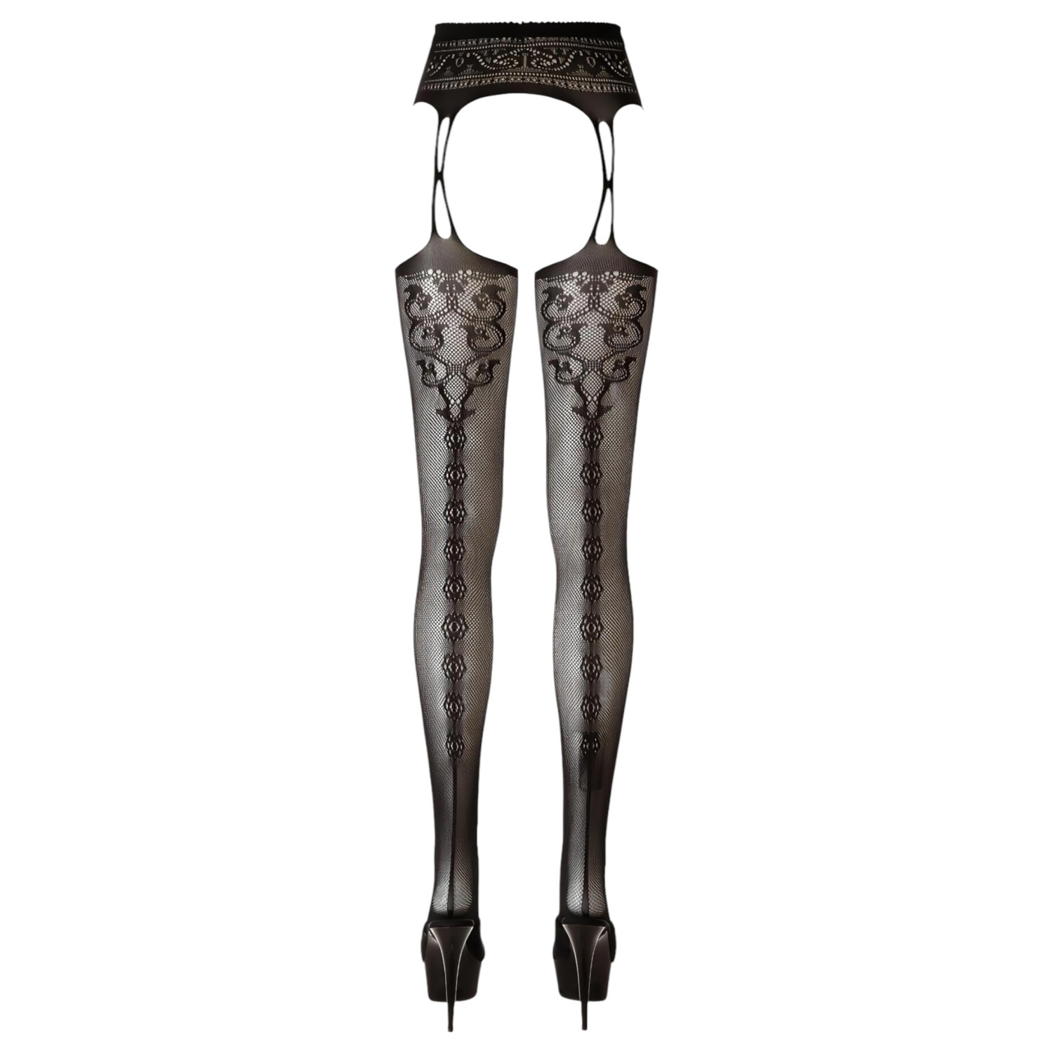 Cottelli - mønstrede nettingstrømper (svart) - L/XL