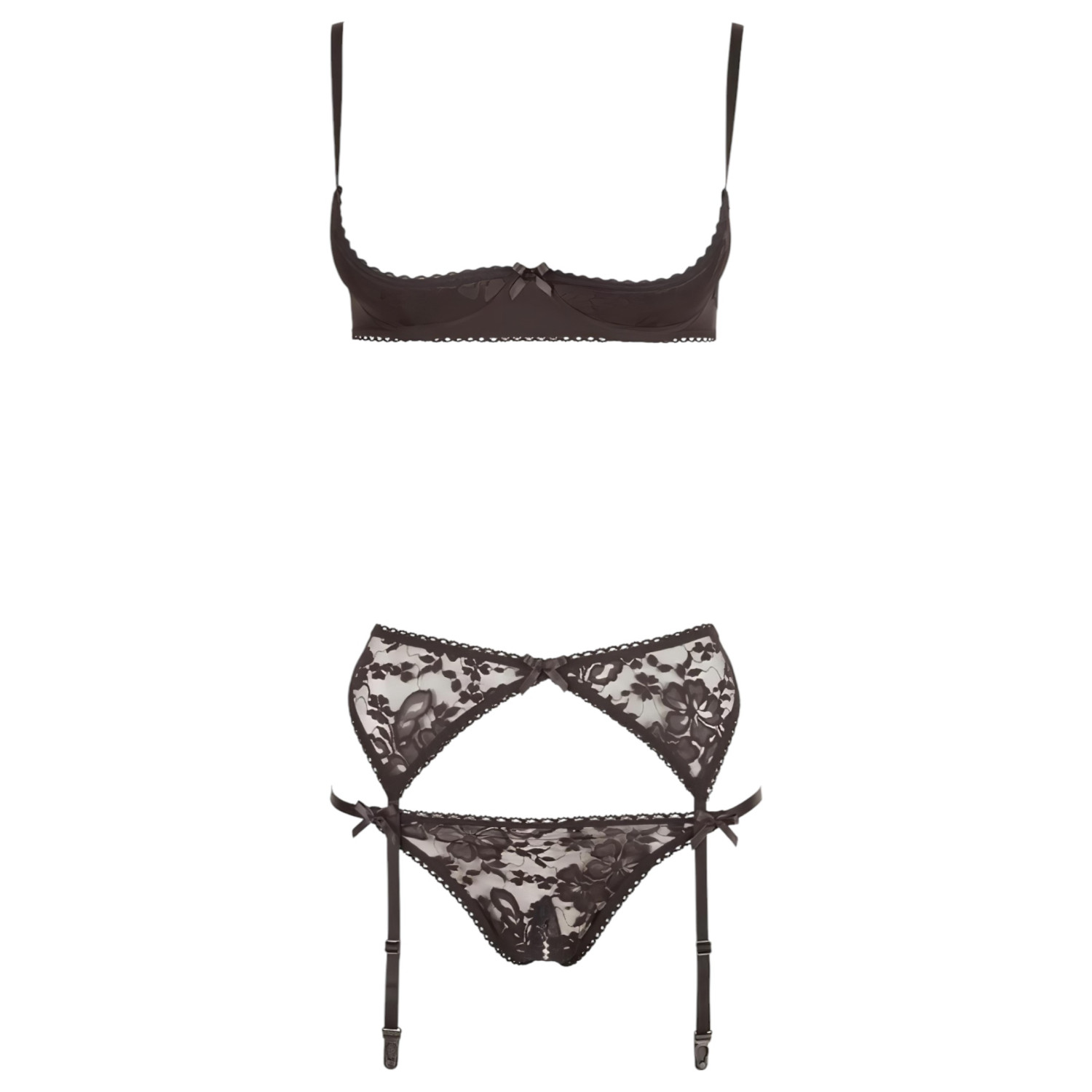 Klassisk, sexy undertøysett, pyntet med myk, gjennomsiktig blonde.