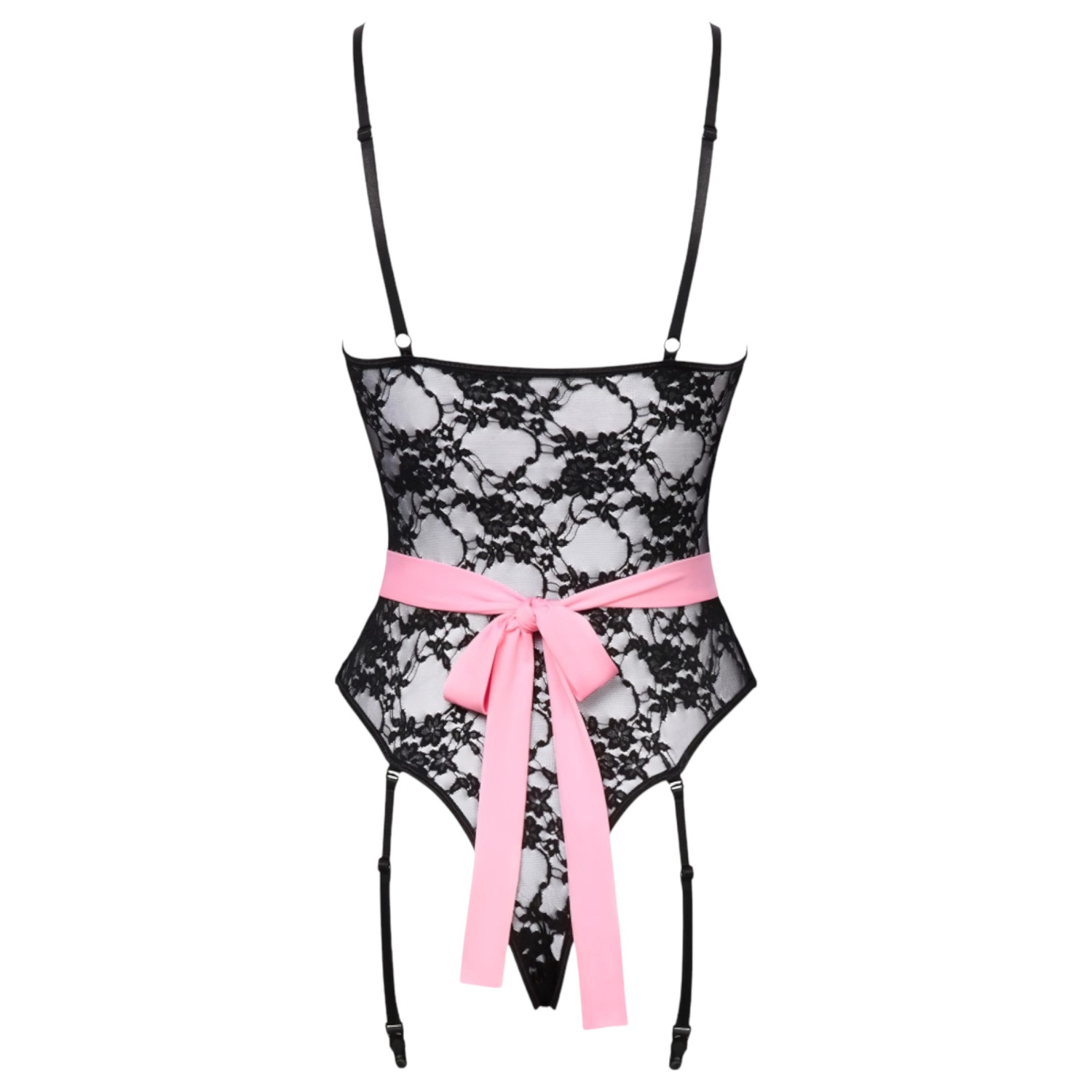 • Sensuell body med dyp utringning av gjennomsiktig stoff - tiltrekker seg all oppmerksomhet