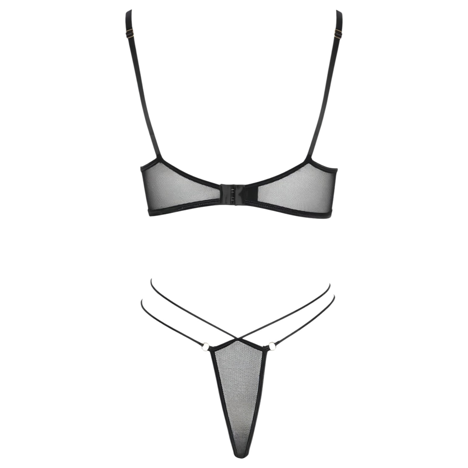 Vakker BH-sett med blonder, stivet for ekstra støtte, laget av delikat gjennomsiktig materiale som innbyr til berøring og nytelse.