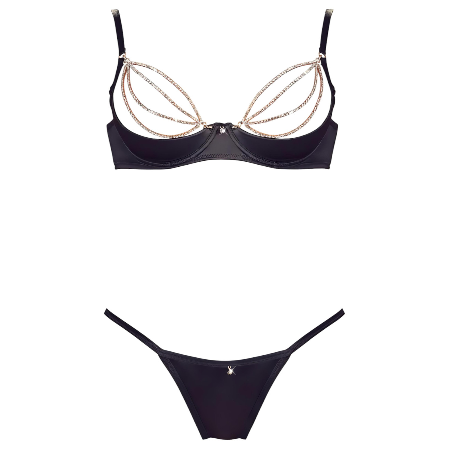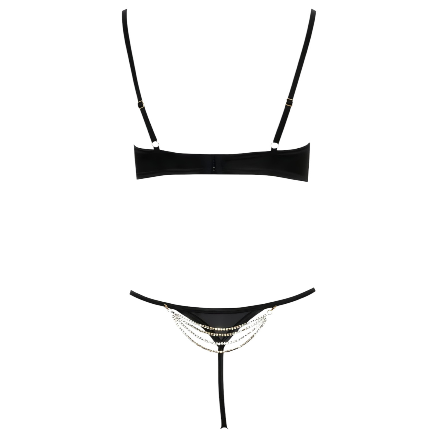 Cottelli - sateng push-up-sett med strasskjede (svart)