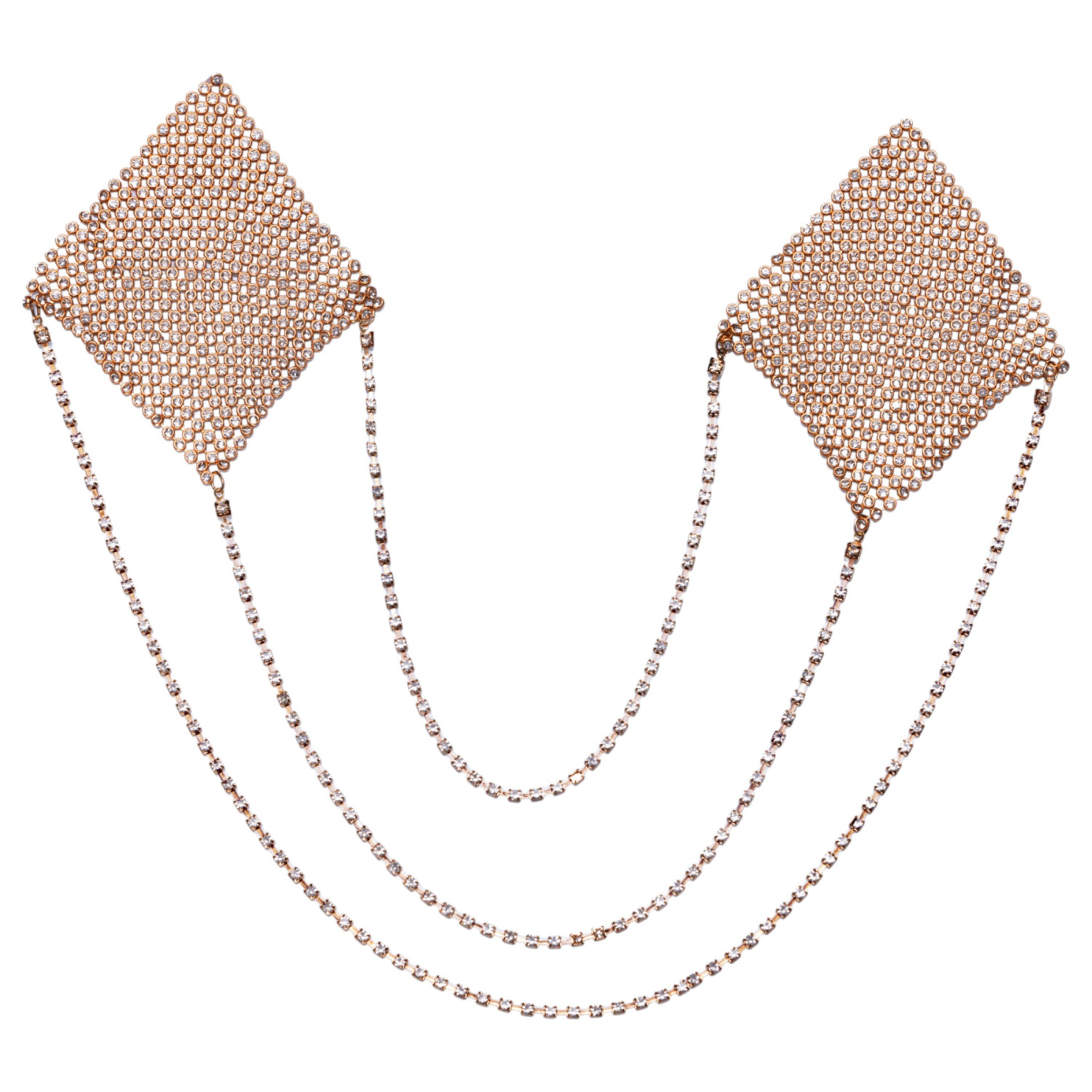 Strål & fengs med Cottelli - diamantformede brystvorteklistremerker, med tre delikate kjeder og en glitrende sølvfarge som gir et virkelig iøynefallende tilbehør!