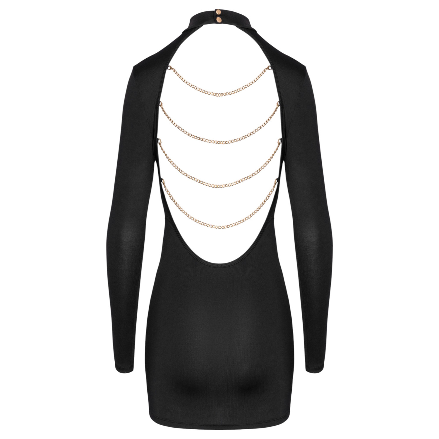 Elegant foran, spennende bak – Cottelli Party svart minikjole med gyllen kjederygg trekker til seg all oppmerksomhet!