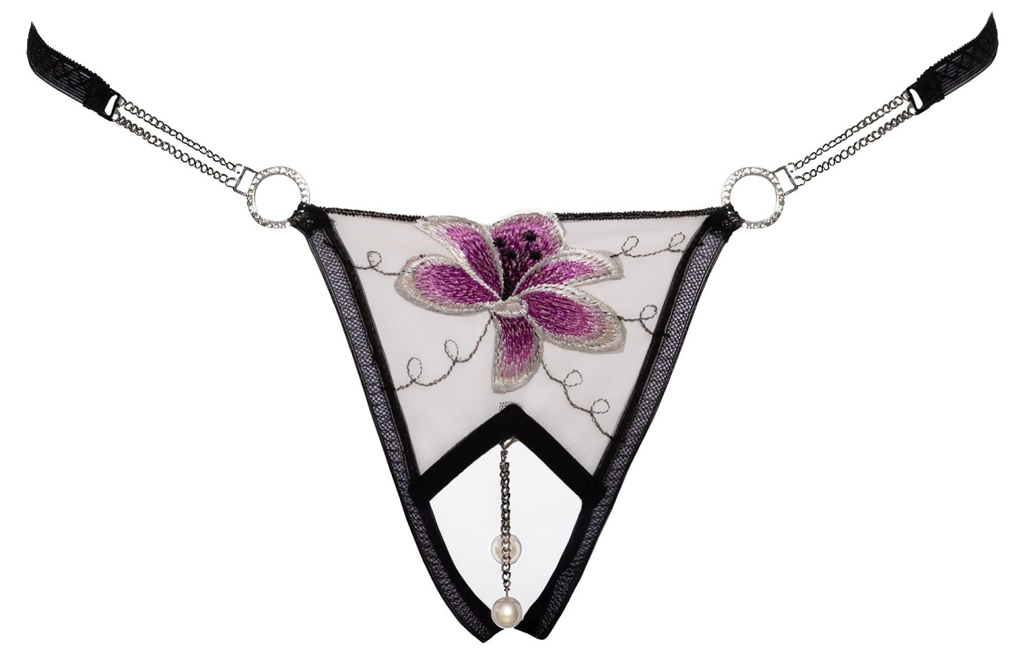 Reviews Cottelli - Luksuriøs brodert lilje tanga (svart-hvit)