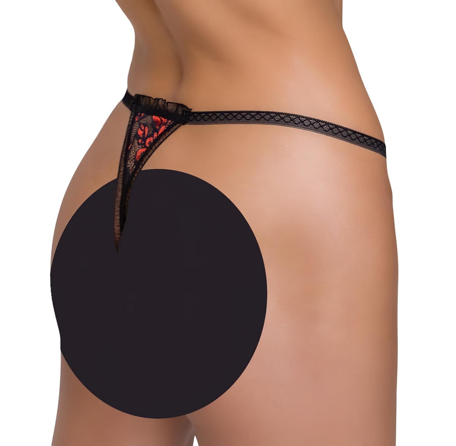 • 1 stk delikat, gjennomsiktig blonde-thong med rosedekor og avtakbar perlesnor