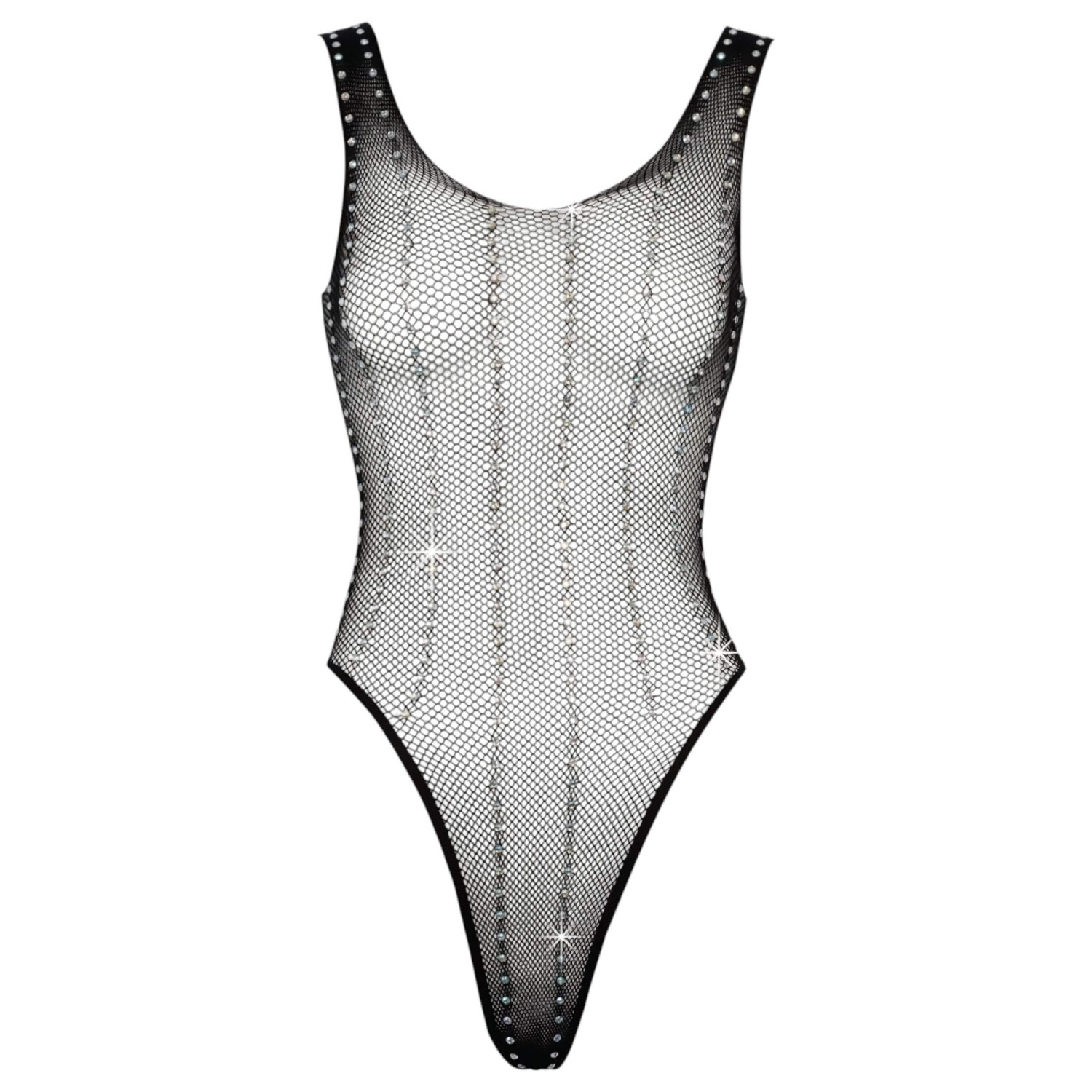 Sensuell netting-body pyntet med glitrende rhinestones, som fremhever feminine kurver perfekt og garantert fanger oppmerksomheten!