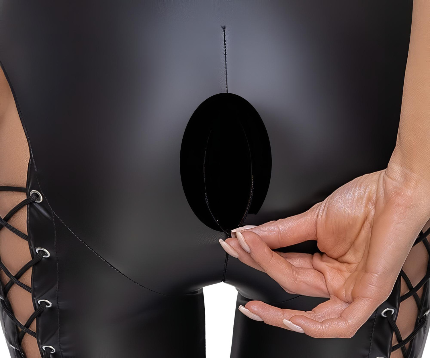 Dette fleksible, matte overallen er det perfekte valget for en dristig festantrekk eller som et dominekostyme.