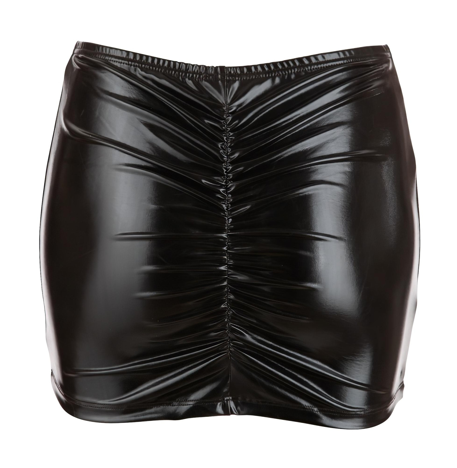 Dette provoserende miniskjørtet er perfekt formet og fremhever kroppens kurver takket være det sorte, skinnende materialet!