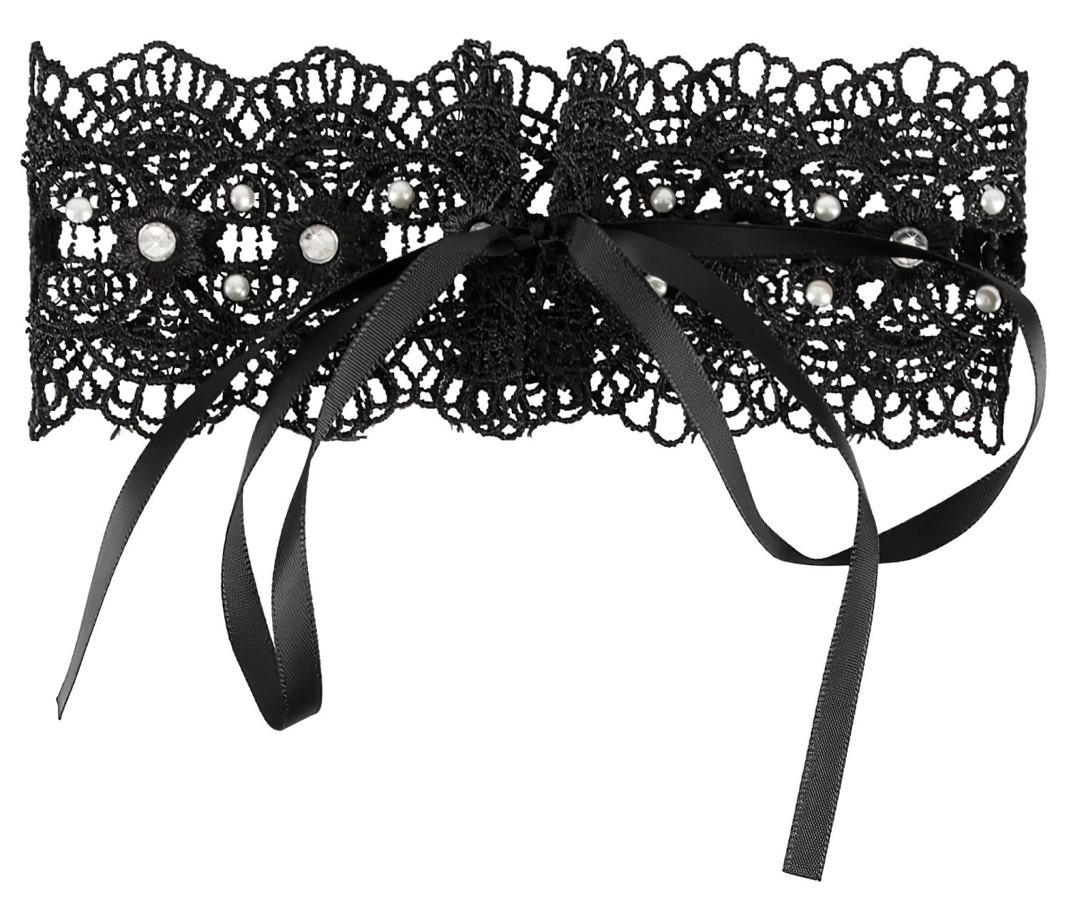 Opinions Cottelli - Perler og strass blondekrage (svart)