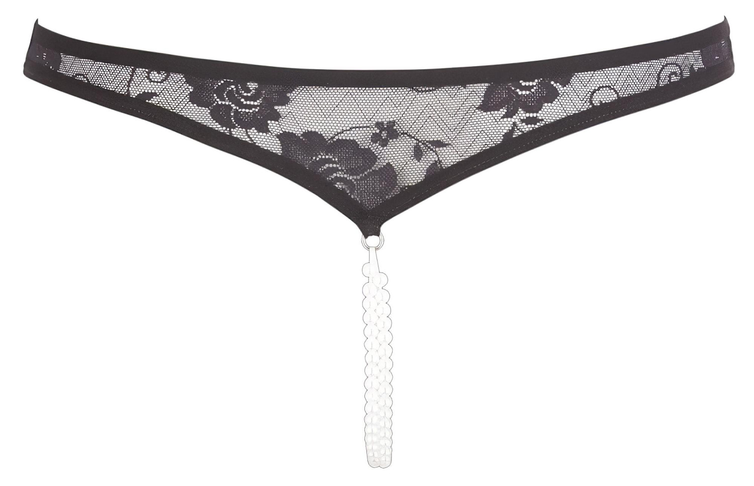 • 1 stykk svart blonde tanga med perler, med åpen utforming.