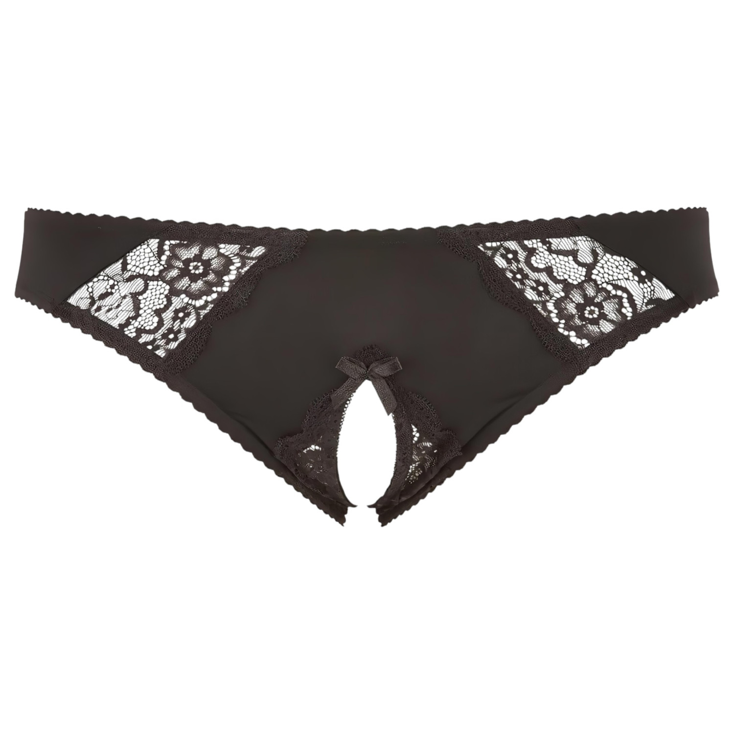 • Detaljer: Blondeinnlegg, åpen skritt, dekorativ sløyfe