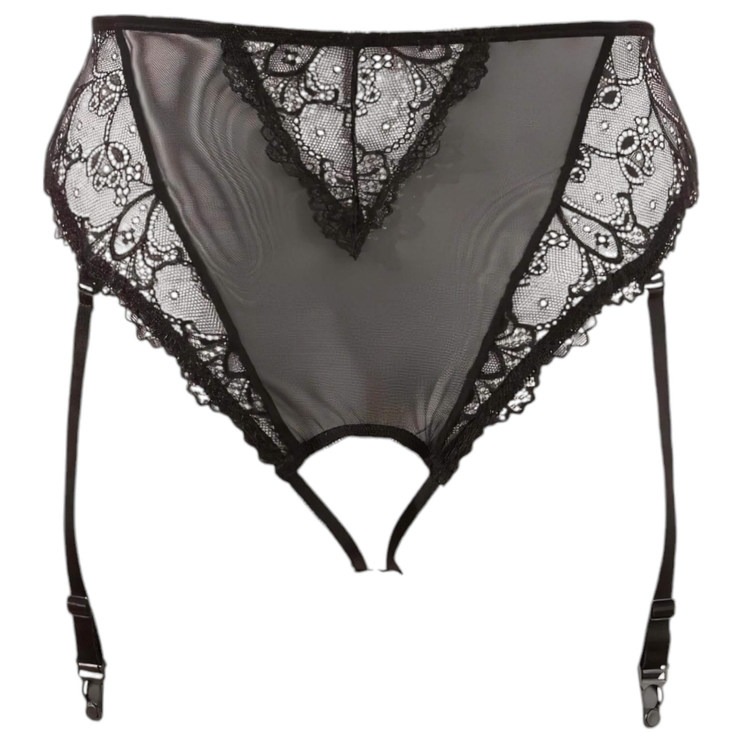 Cottelli Plus Size - sort med blonde & strømpeholder (svart) - XXXXL