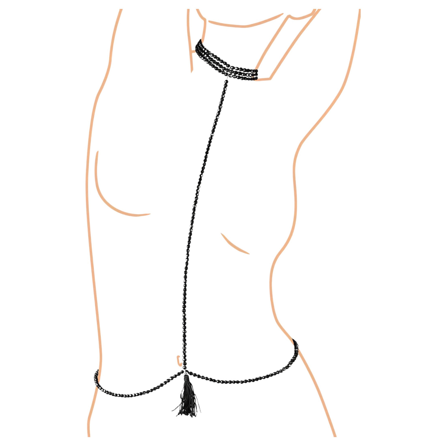 Cottelli - Perlesmykket kroppsharness med halsbånd (svart)