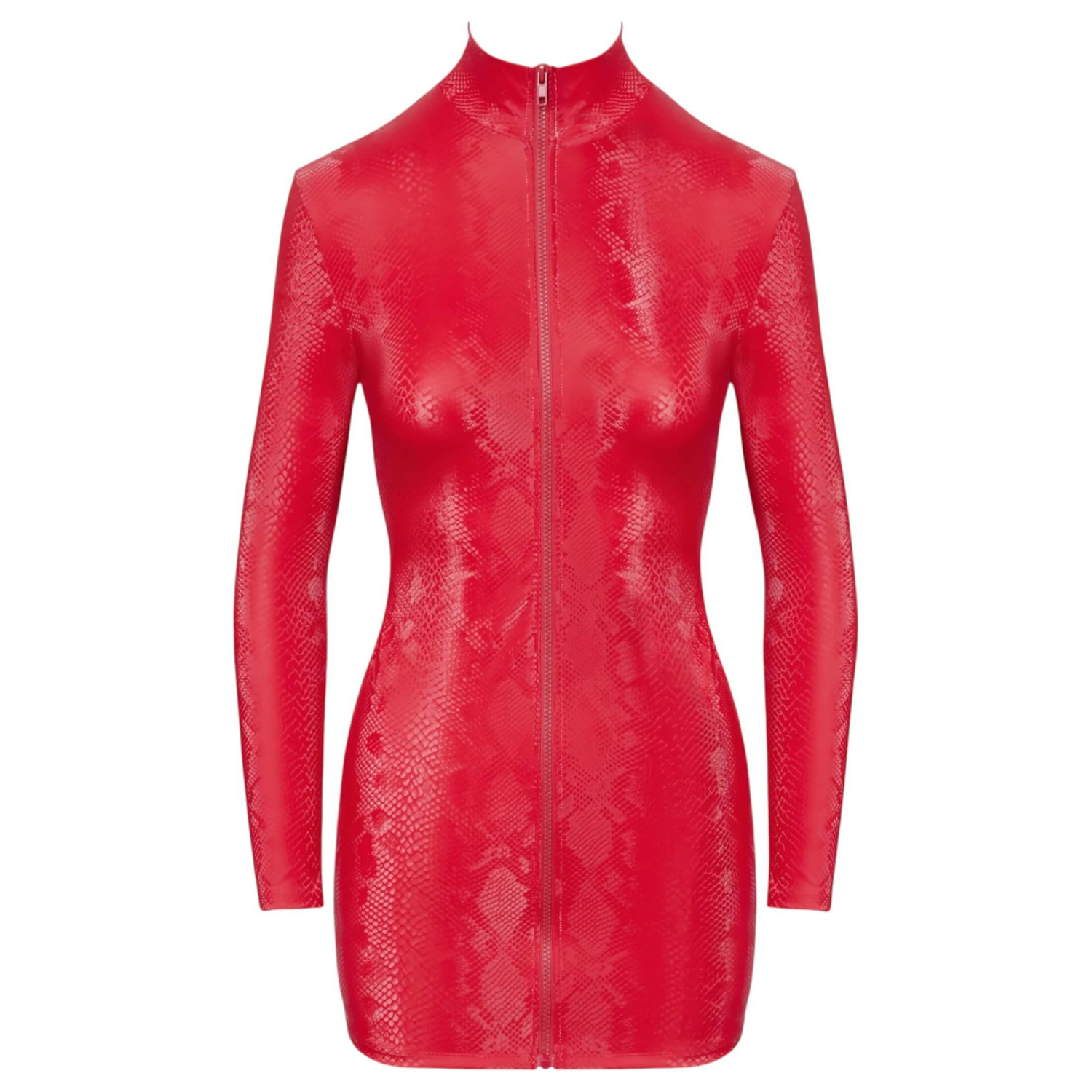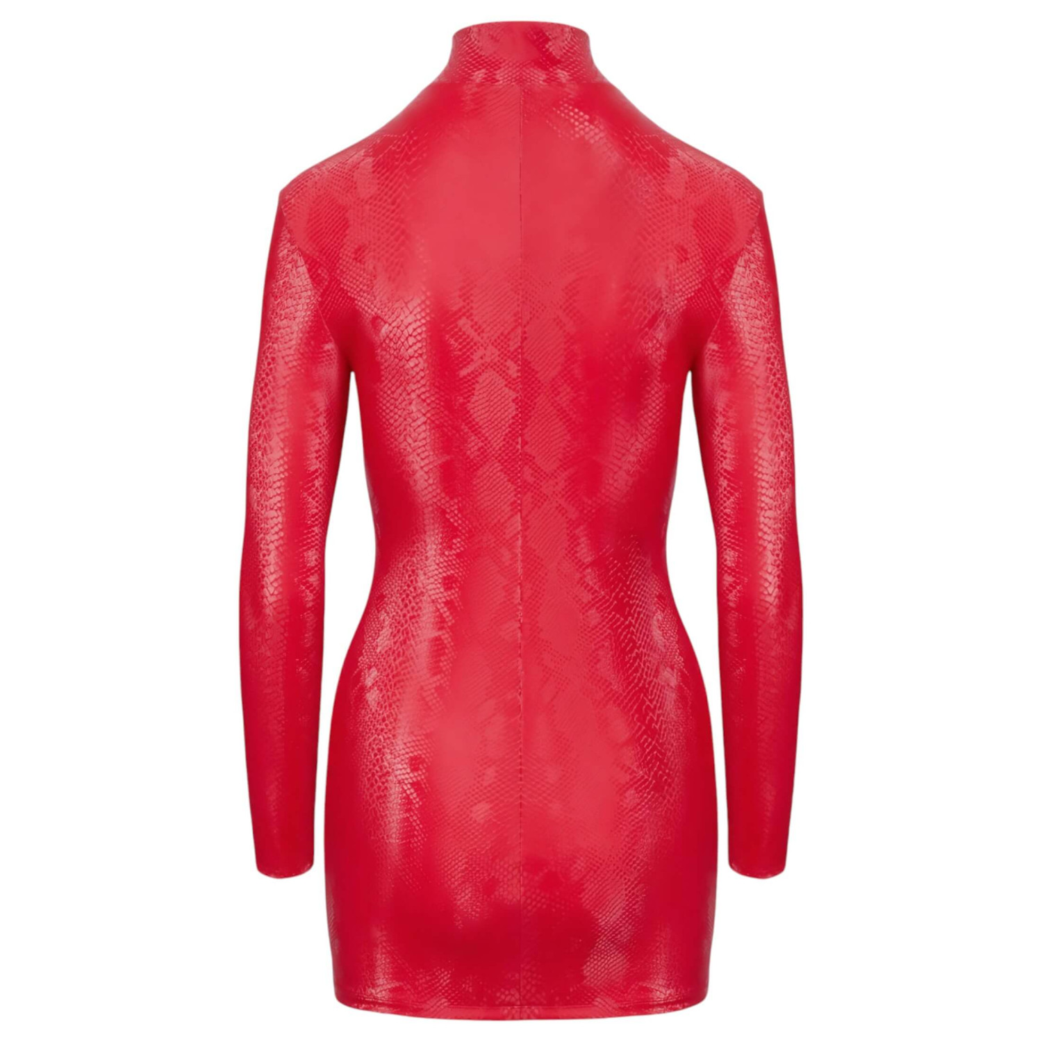Den smale og veldig korte kjolen fra Cottelli PARTY har en trendy rød slangeskinnslook.