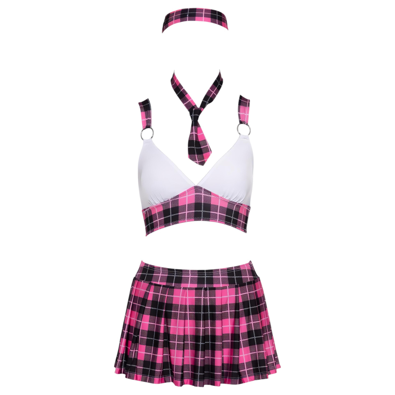 Cottelli - Rutete skolejente kostyme sett (rosa)