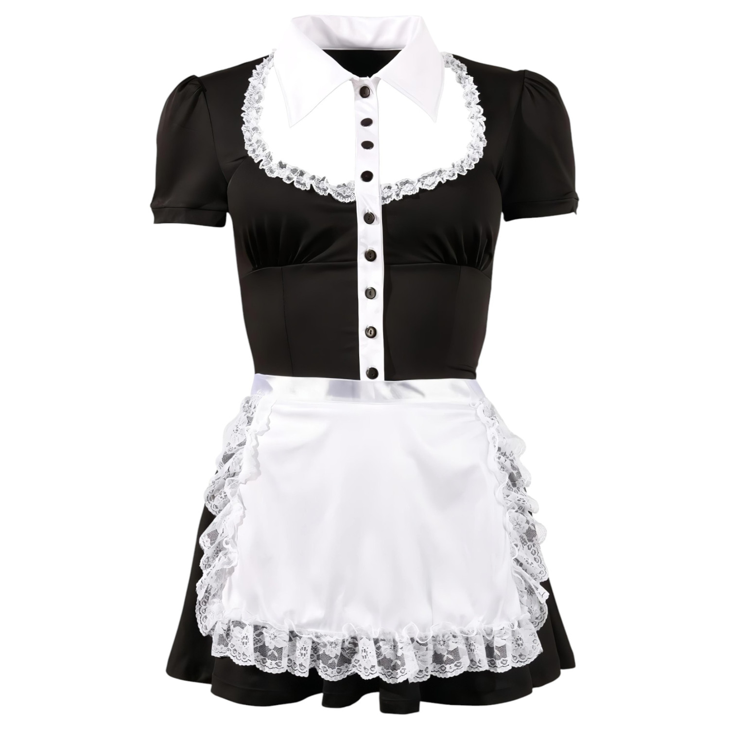 Denne sjarmerende svarte minikjolen minner om hushjelpstil, og er et perfekt valg for en sexy og leken look.