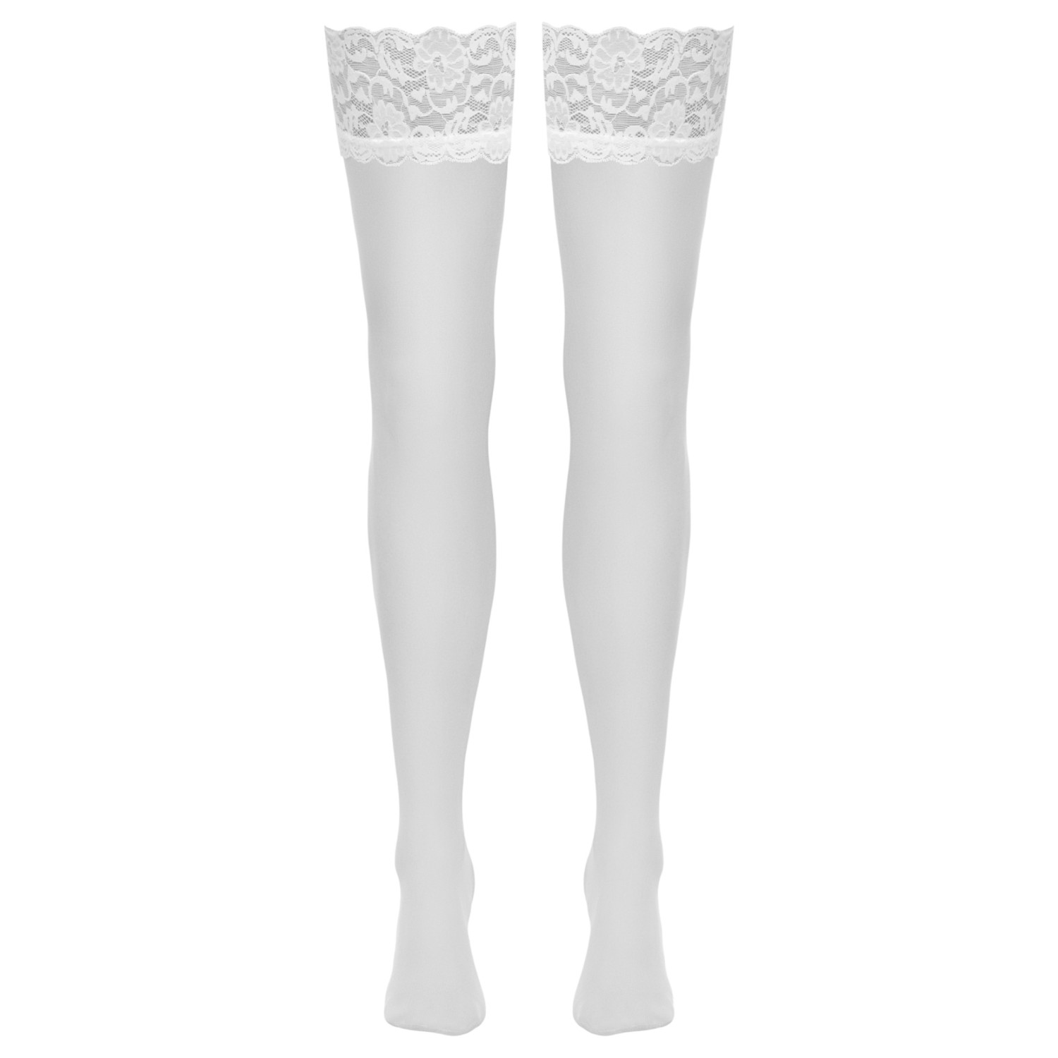 Cottelli LEGWARE – elegante hvite strømper med blonder (20 den)