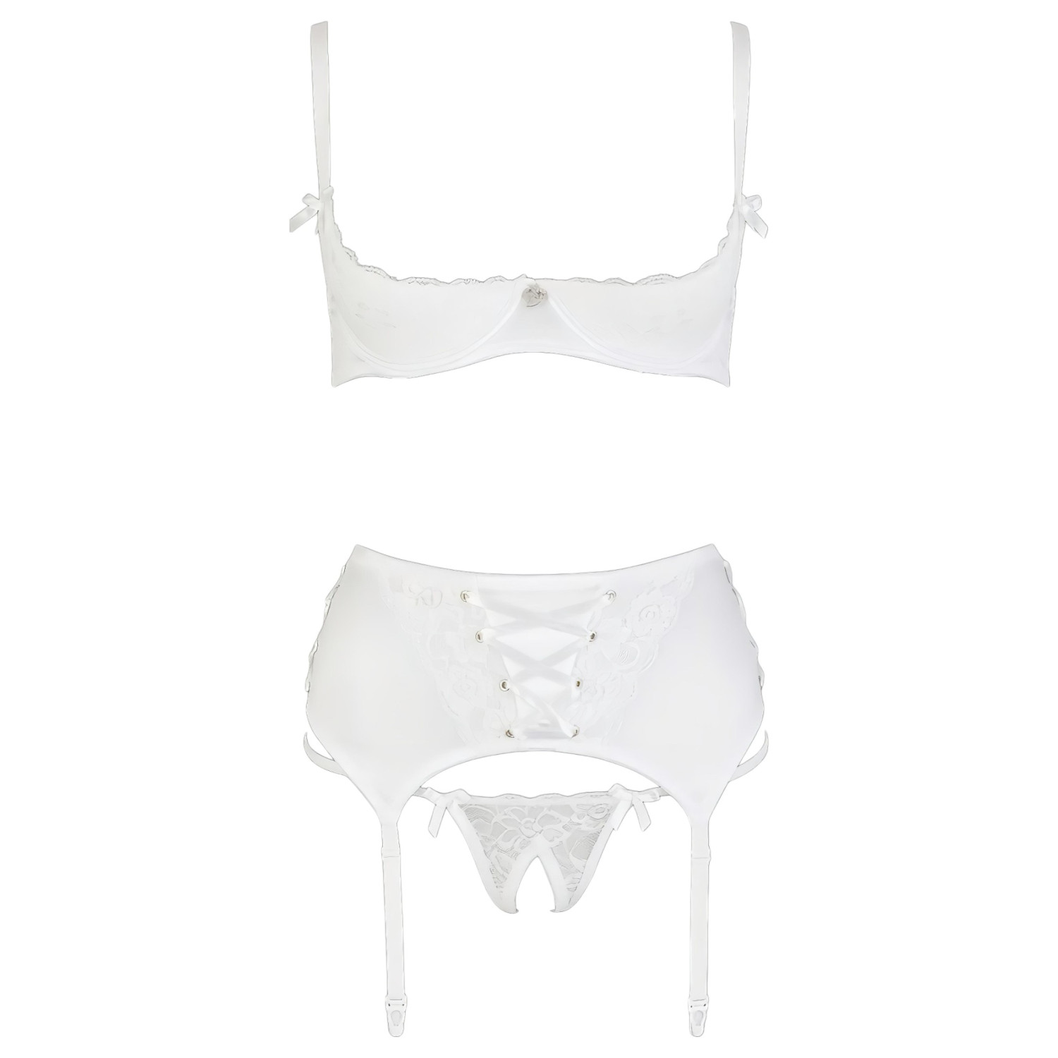 Et sensuelt undertøysett, som er et perfekt valg for bryllupsnatten og intime stunder, da det ikke trenger å tas av under bruk!