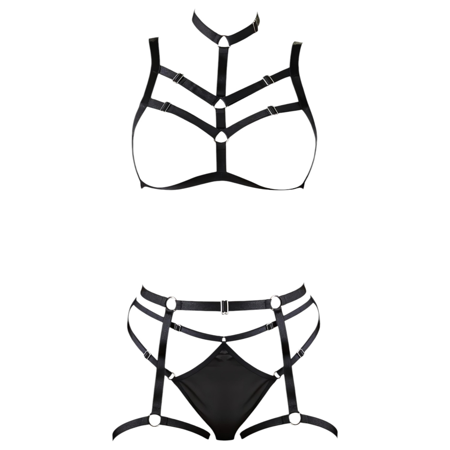 Cottelli - Eksklusivt sort kroppsharness-trio (S-L)