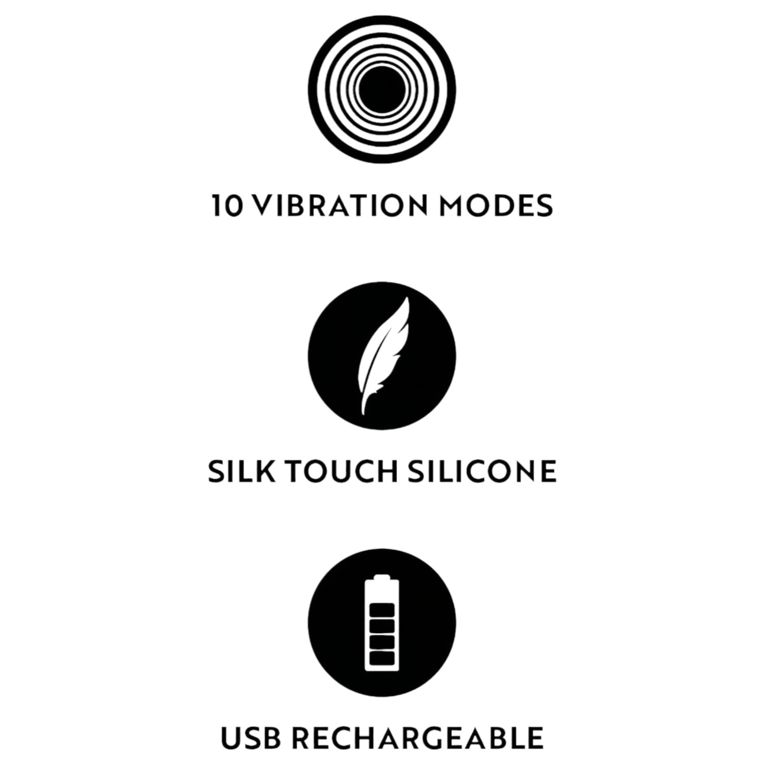 • 10 vibrasjonsmoduser for personlig tilpasset nytelse.