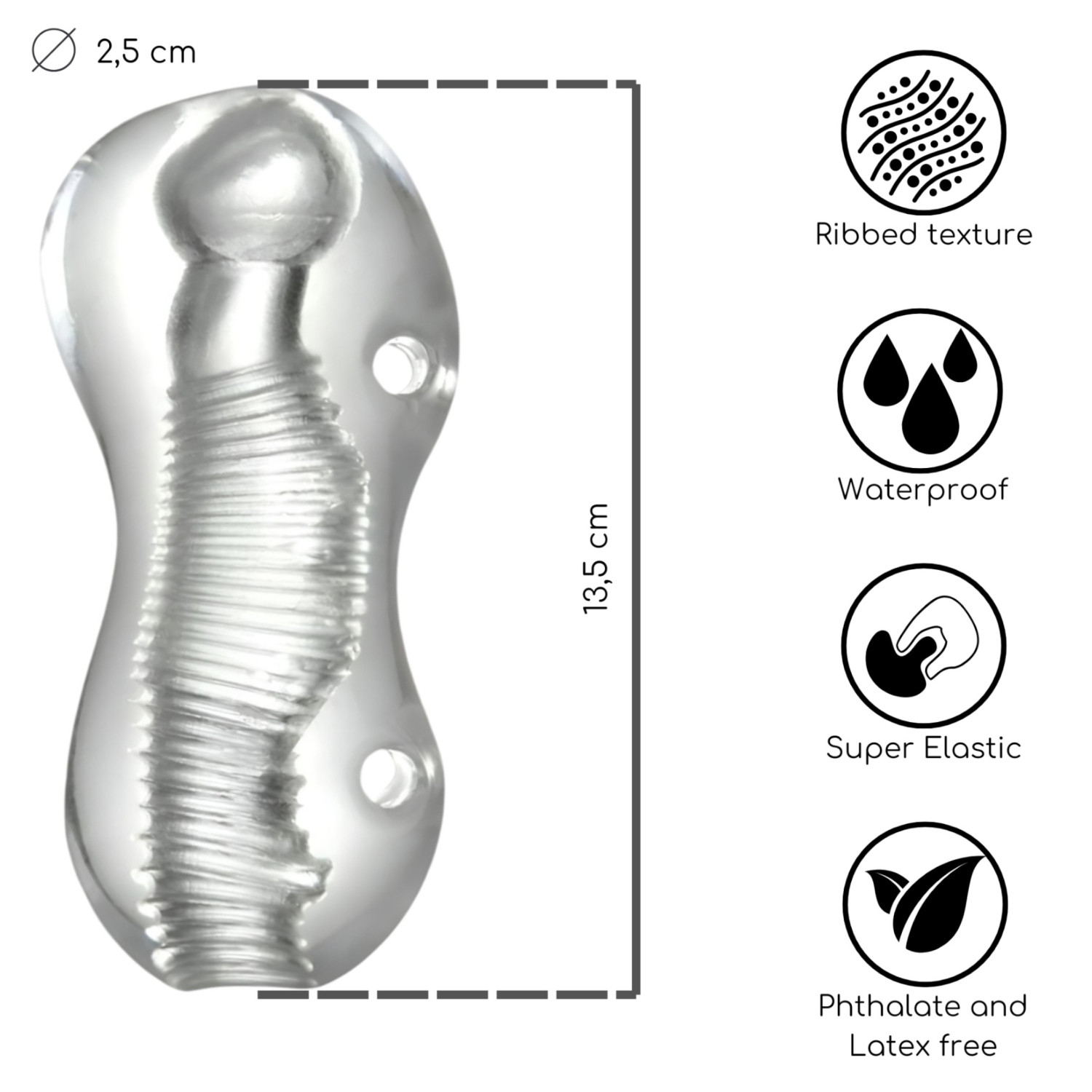 • Ribbet indre overflate - stimulerer penis til det ekstreme når den glir inn og ut